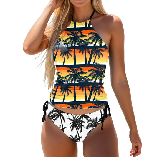 Bikini Women Swimsuit Coconut Tree Print Halter Bikinis Set High Waist Swimwear Summer Beach Bathing Suit Female