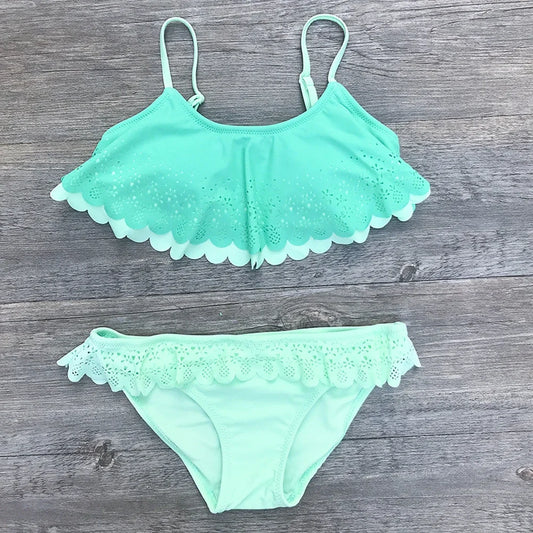 Girl Swimsuit Biquini Two Pieces Swim Suits Children Split Hollow Falbala Bikini Sets Children Swimwear Kids Bathing Suit