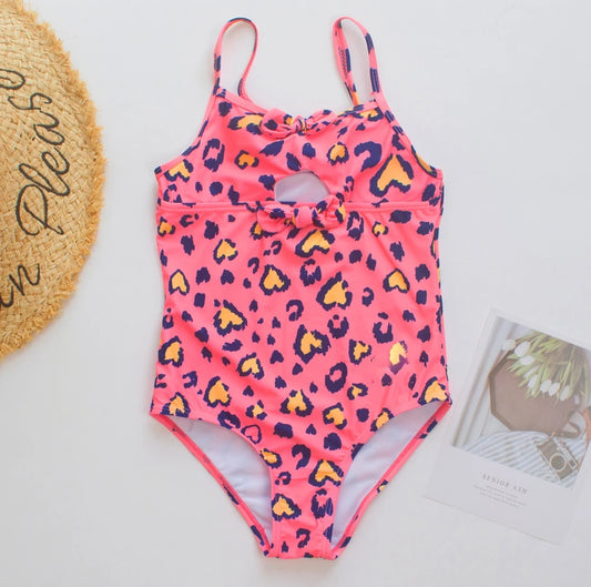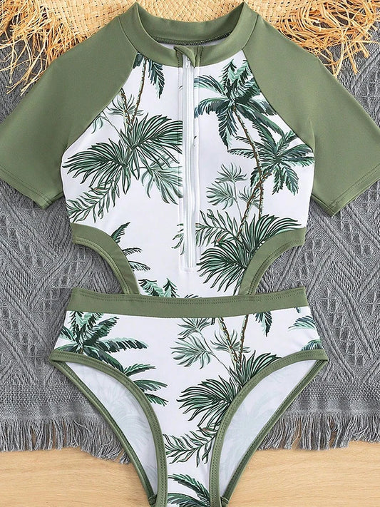 Print Hollow Girls Swimsuit One Piece Green Kids Swimwear Female Children's Bathers Bathing Swimming Swim Suit Beachwear
