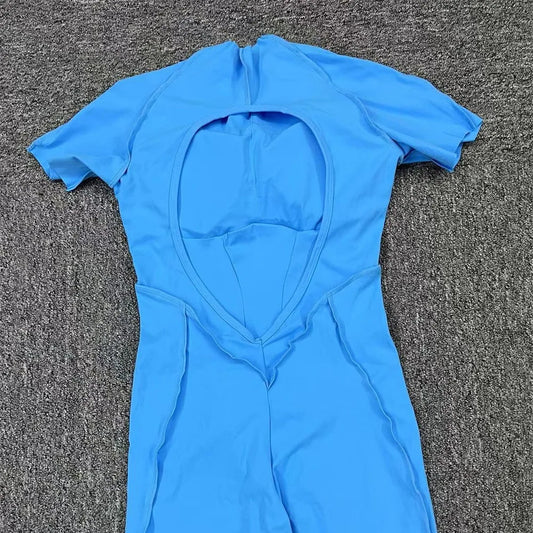 Backless Jumpsuit Women Tummy Control One Piece Bodycon Stretch Shorts Tank Top Sleeveless Scrunch Yoga Romper