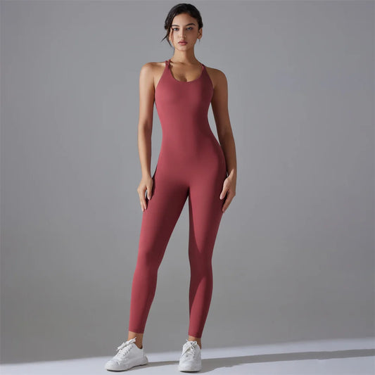 Backless Women Sport Bodysuits Backcross Sleeveless Overalls For Women Female Jumpsuit Fitness Gym Leggings