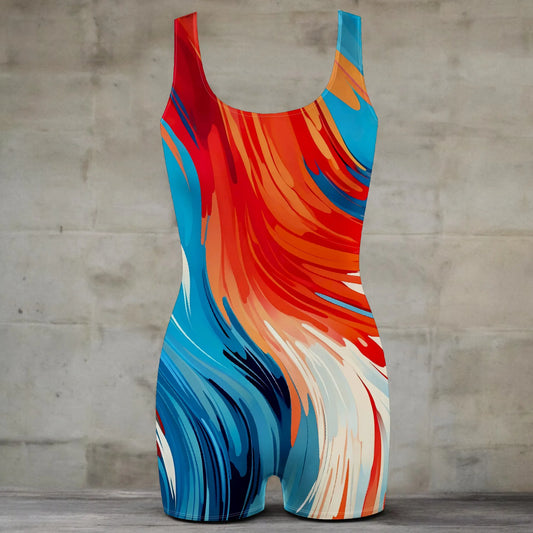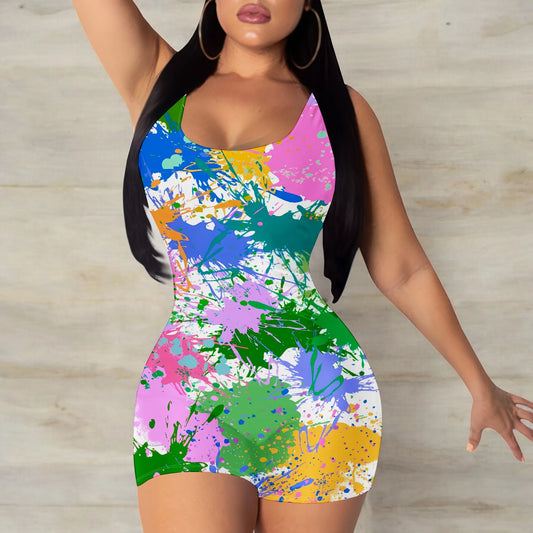 Color Splash Print Romper for Women Regular Size Summer Casual Sleeveless Bodycon Romper