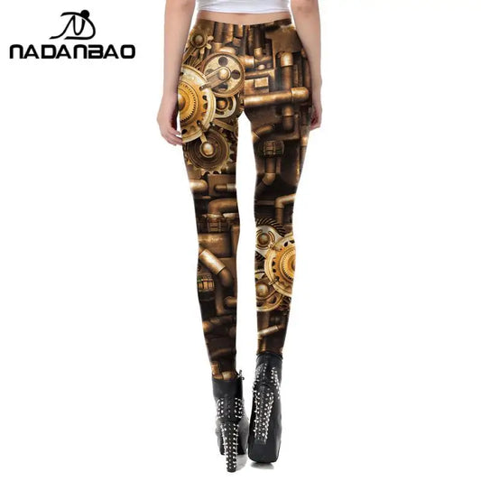 NADANBAO Gold Metal Gear Punk Leggings Women Fashion Steampunk Machinery