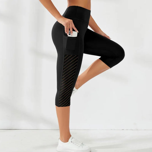 Sport Shorts Cropped Pants Female Fitness Nudity High Waist Hip Lift Running Yoga Side Pockets Tights Quick Dry Gym Sportswear