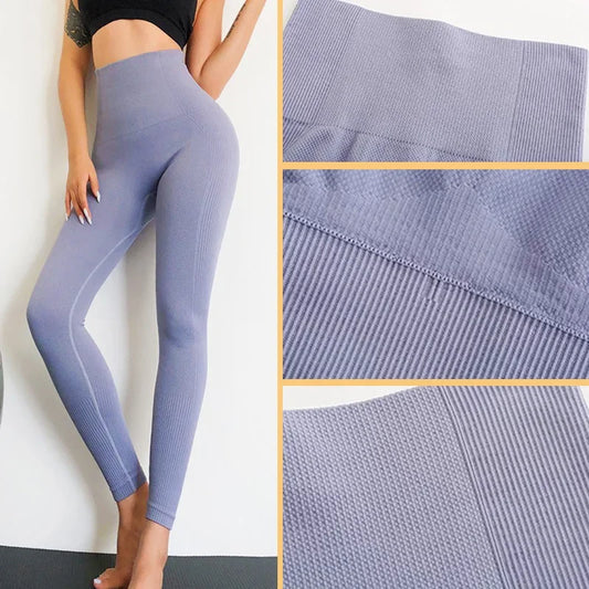 Seamless Ribbed Yoga Pants Women Push Up Leggings Elasticity Sports Pants Solid Gym Clothing High Waisted Abdomen Leggings Women
