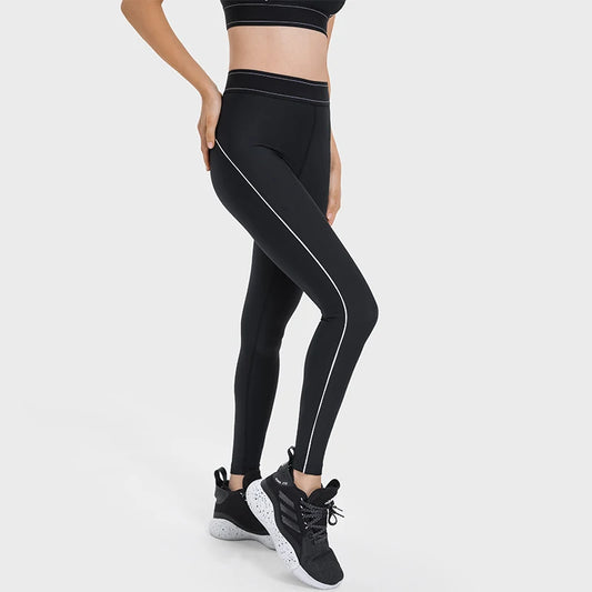 Running Sports Leggings Women High Waist Slim-Fitting Side Stripes Tight Sharkskin Casual Leggings