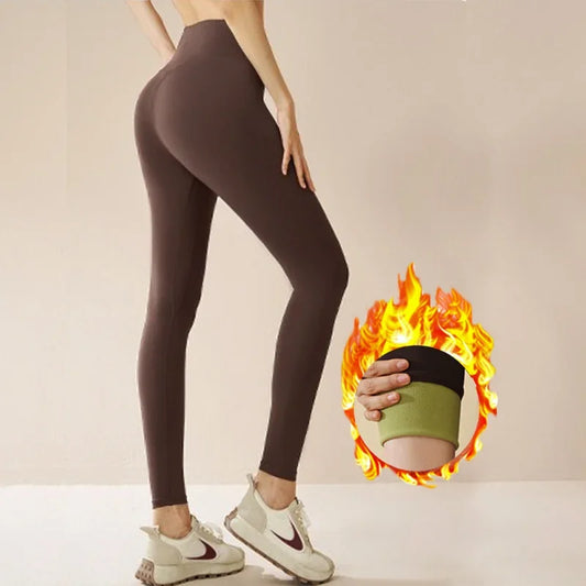 Nylon Winter Warm Leggings Yoga Gym Women's Pants Invisible Waist Pocket Soft Elastic High Waist Woman Clothing