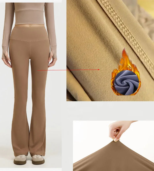 Aiithuug Winter Warm Flared Yoga Pants Women's Fleece Inner High Waist Tight Fit Leggings Workout Fitness Gym Pilates Leggings