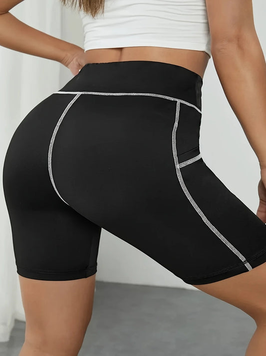 Women's High-Waisted Yoga Shorts Plus Size Workout Leggings with Dual Pockets Stretch European Style Activewear for Gym & Casual
