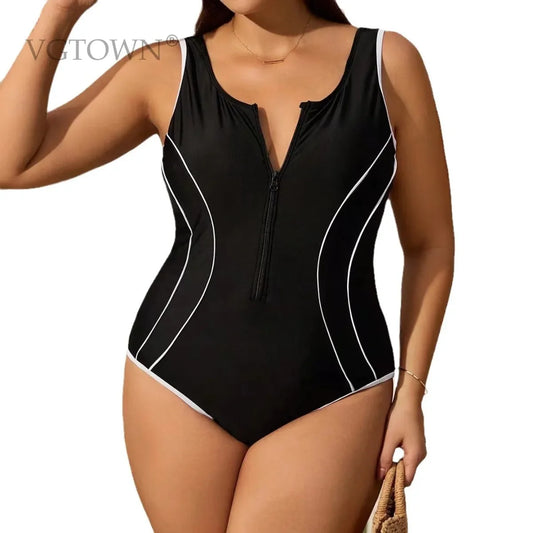Plus Size Women's Swimsuit One Piece Swimwear Black Tummy Control Bathing Suit Female Trend Beach Wear