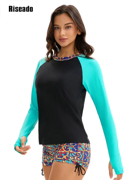 Rash Guard Swimsuits for Women Sun Protection Uv UPF 50+ High Waist Two-Piece Long Sleeves Surf Suit Swimwear