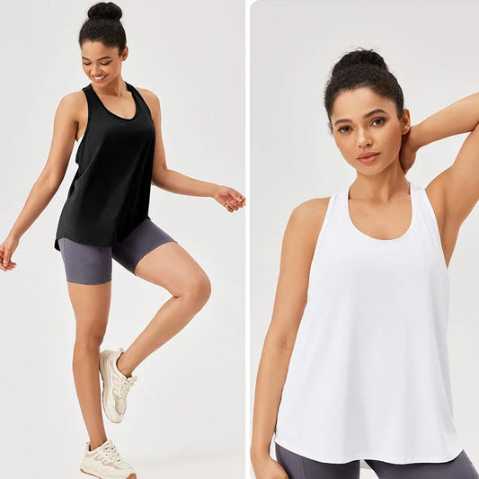 Women Summer Open-Back Yoga Vest for Loose-Fit and Moisture-Wicking Sleeveless Running Fitness Shirt
