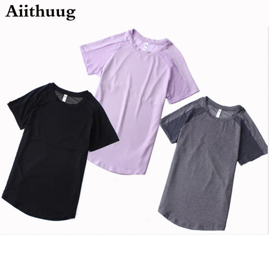Aiithuug Short Sleeve Yoga Shirts Running Shirt Gym Workout Quick Dry Soft Tops Compress Sports T Shirt Simple Elastic Crop Top