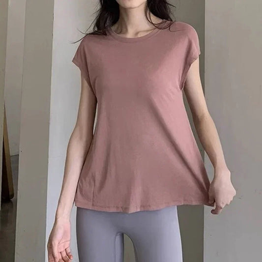 Women's Fitness Sports T-shirt Tops Running Loose Split Short Sleeve Quick Drying Shirts Leisure Clothing Blouse Yoga Top