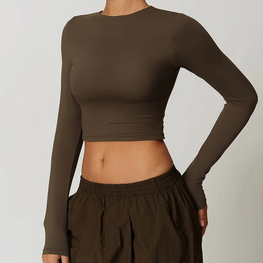 Sports Workout Crop T Shirt Long Sleeve Gym Top Fitness Running Breathable Gym Clothing Sportswear Women Quick Dry Yoga Tops