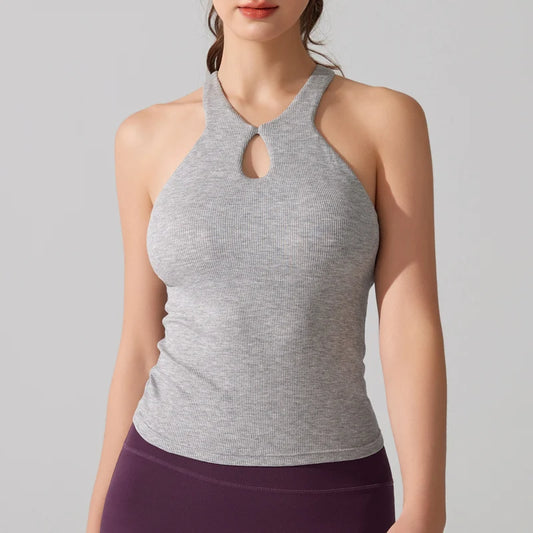 VITALINOVO Women's Tank Top High Neck Ribbed Raceback Going Out Basic Tops with Built-in Bra Summer Sleeveless Yoga Slim Fitted
