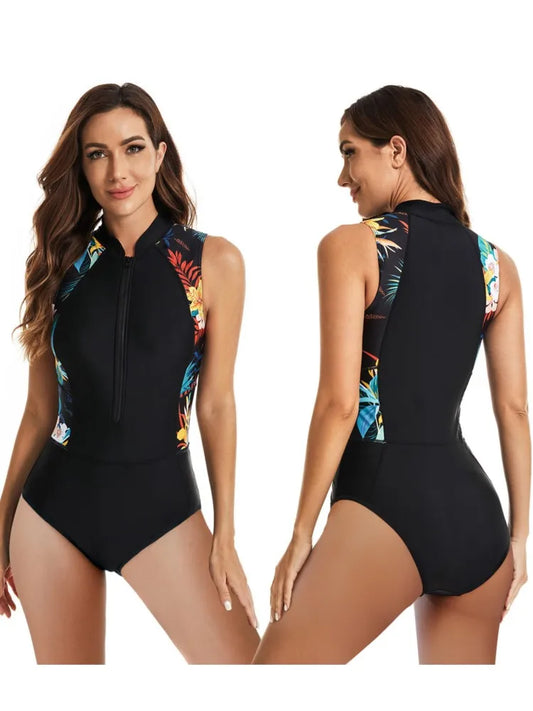 Women's Swimwear Sleeveless One Piece Surfing Swimsuit Female Front Zipper Sport Style Swimming Clothes Woman Bathing Suit