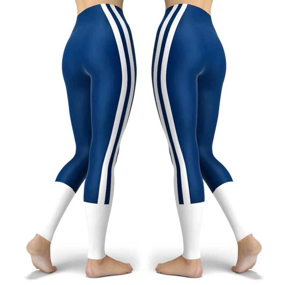 Printed Women's Sport Leggings Femme Fresh Color Striped Elastic Workout Blue Legging Outdoor Clothes