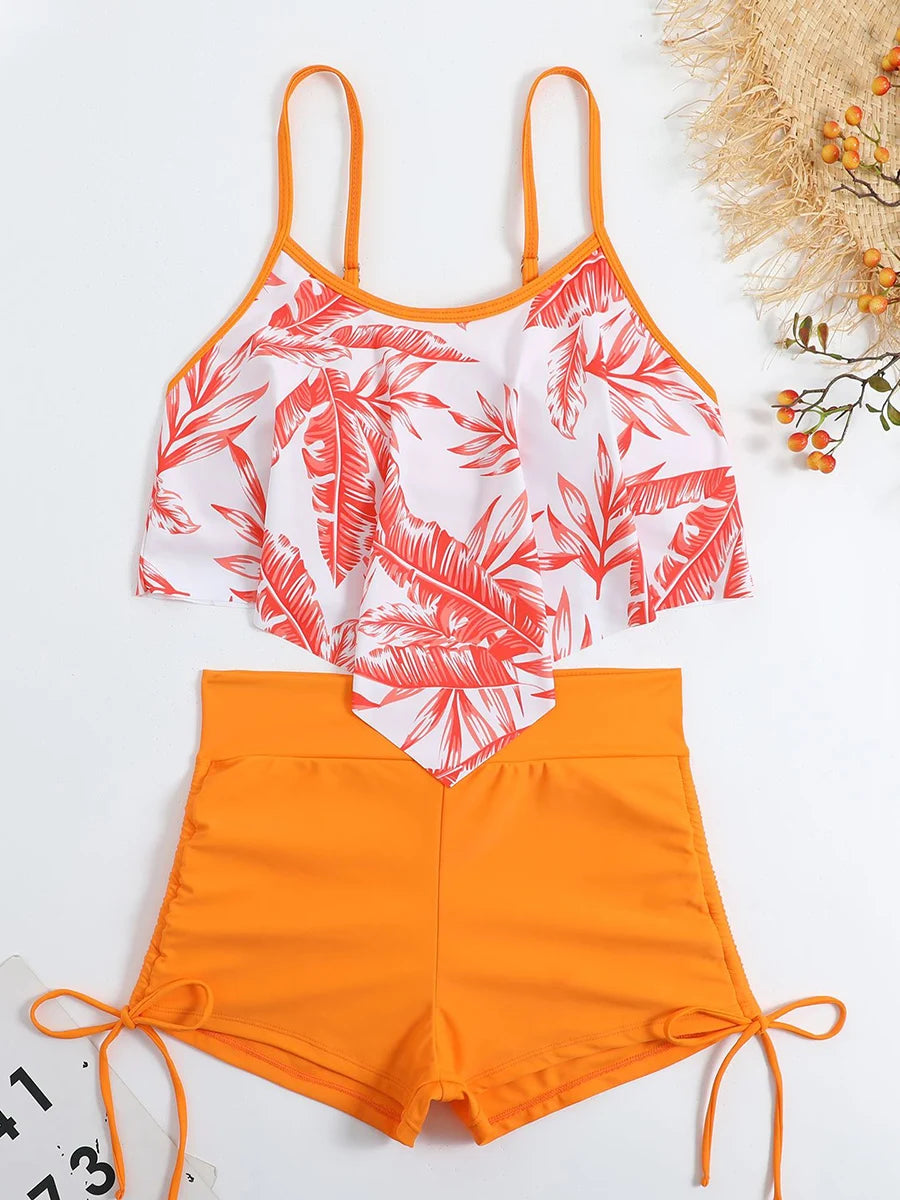 Ruffle Sports Bikini Set Two Piece Swimsuit Women With Shorts Swimwear Female Bathing Swimming Suit Beach Wear Summer