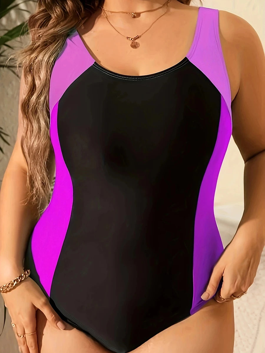 This one-piece sports swimsuit is designed to provide a slimming fit and comfortable support for plus-size women. Crafted for active swimming and beachwear, it offers a flattering silhouette while ensuring freedom of movement. Ideal for bathing and water activities, this swimwear combines functionality with style, making it a reliable choice for confident performance in the water.