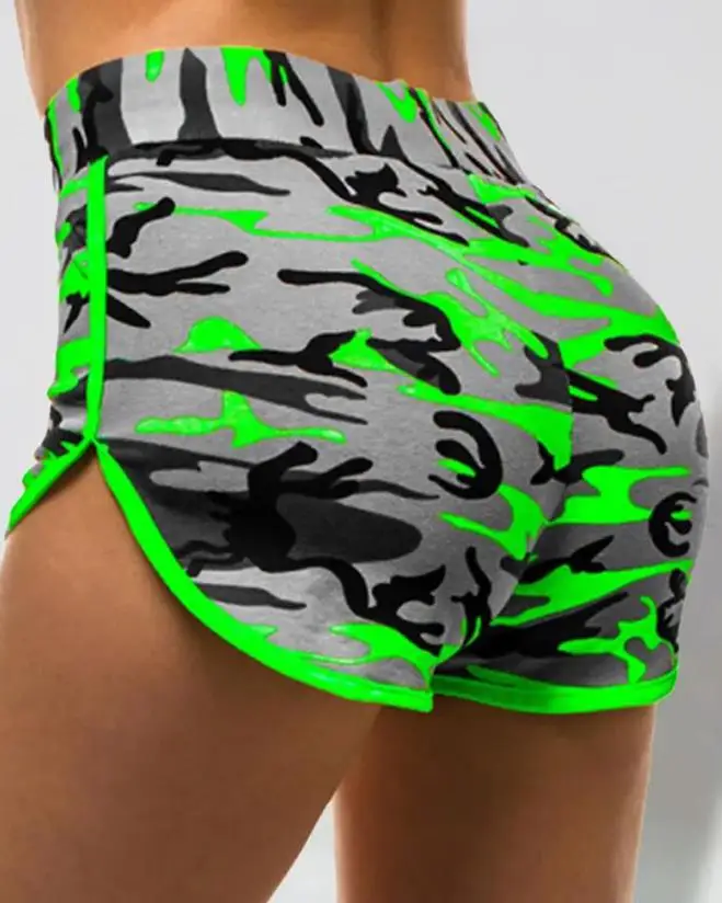 Women's Shorts Fashion Camouflage Printing Drawcord High Waist Shorts Casual Sports Pants Fitness Jogging Shorts