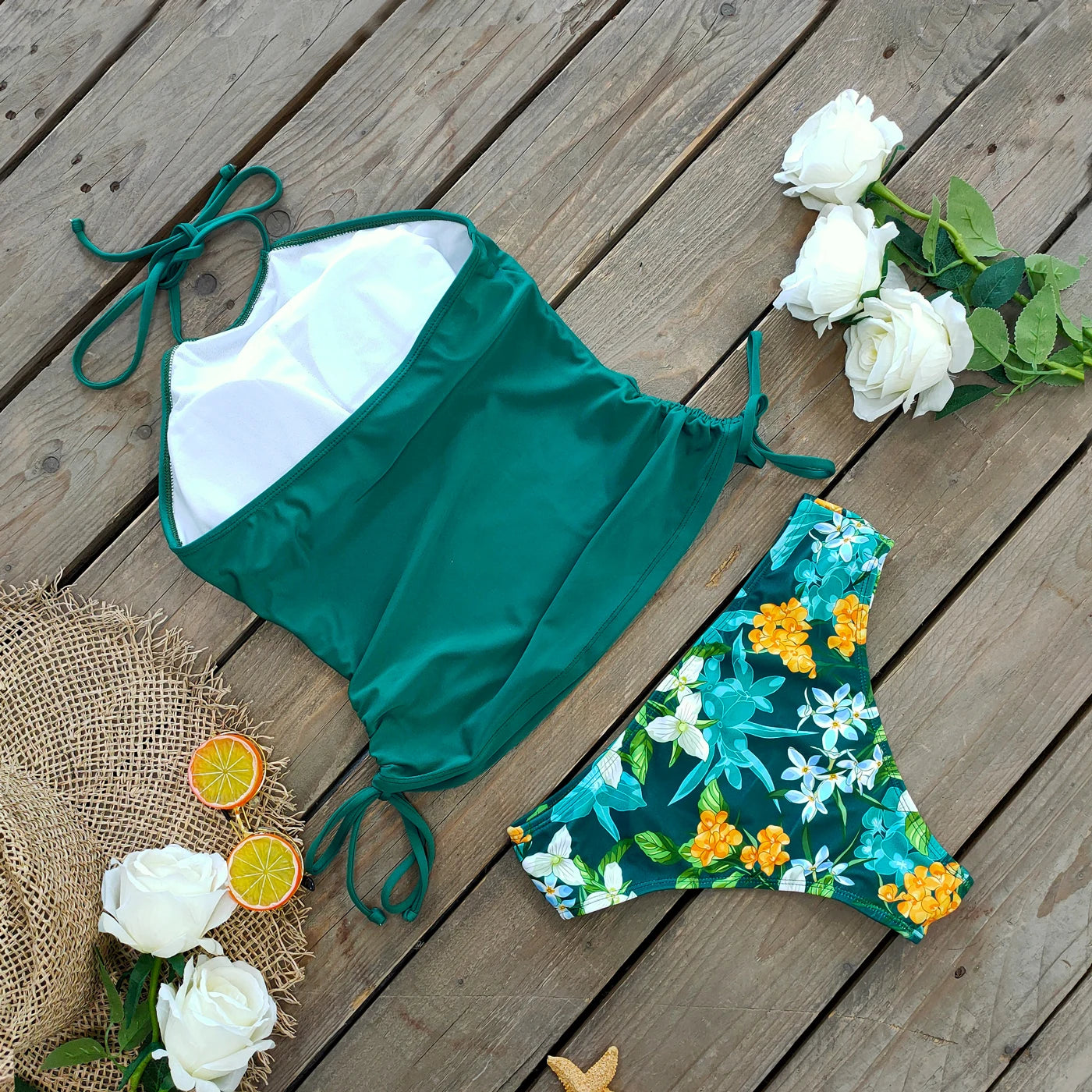 Shirring Tankini Swimwear Women Bikini Two Pieces Swimsuit Tummy Control Bikini Set Bathing Suit Summer Beach Wear