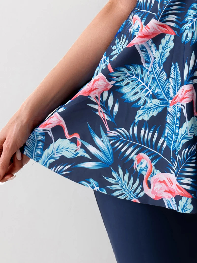 This two-piece swimsuit features a stylish printed tankini top paired with a coordinating beach dress, designed for women seeking both comfort and performance. Crafted for sports and swimming activities, it offers a secure fit and freedom of movement, making it ideal for active beach days or poolside workouts. The breathable fabric ensures quick drying and durability, while the modern design provides flattering coverage without compromising style. Perfect for those who want functional swimwear that transitions effortlessly from water to shore.