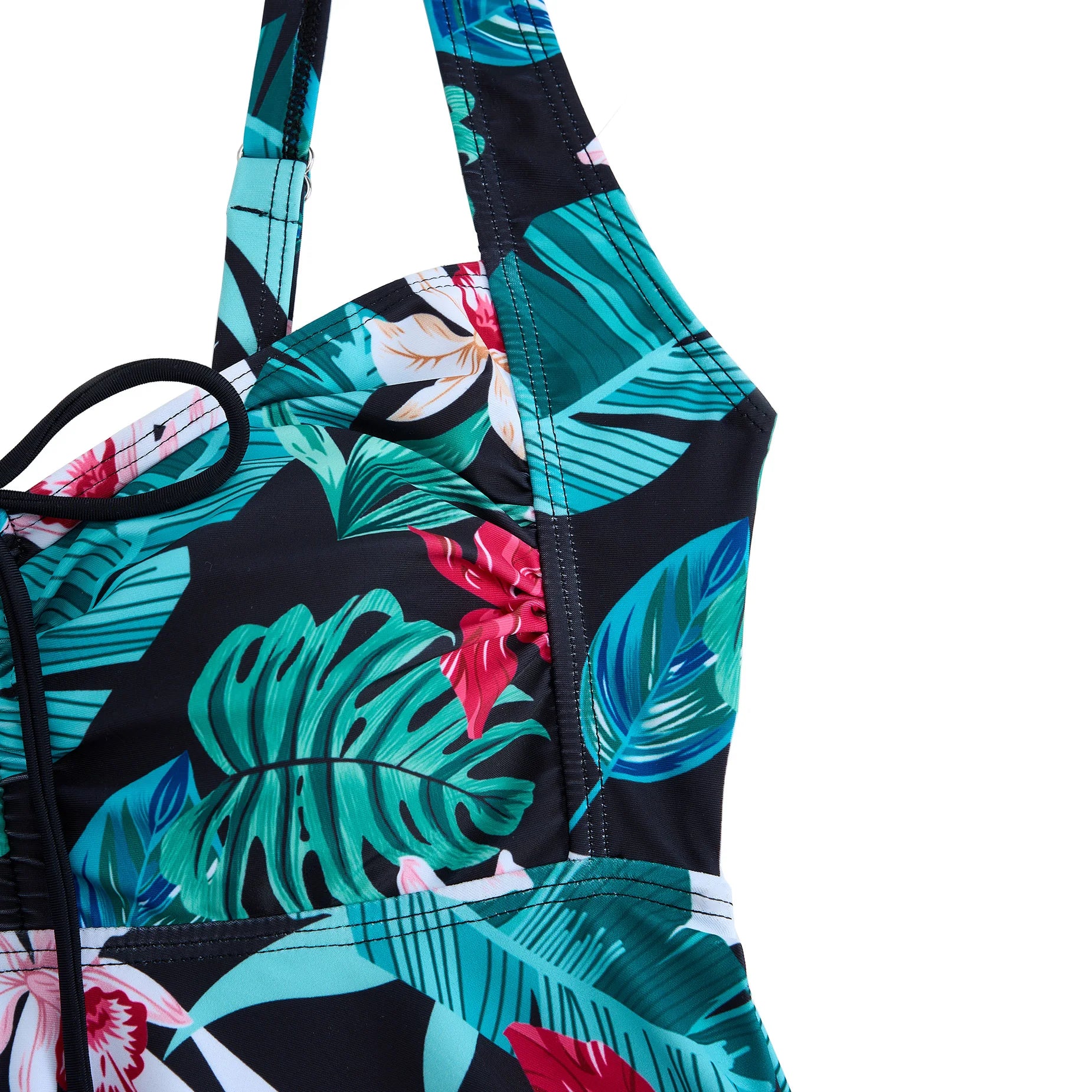 Two Pieces Swimsuit Women Beach Dress Printed Tankini Set Swimwear Female Sports Bathing Swimming Swim Suit Beachwear