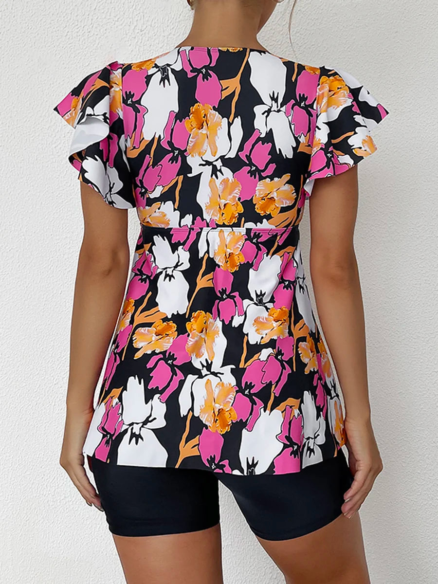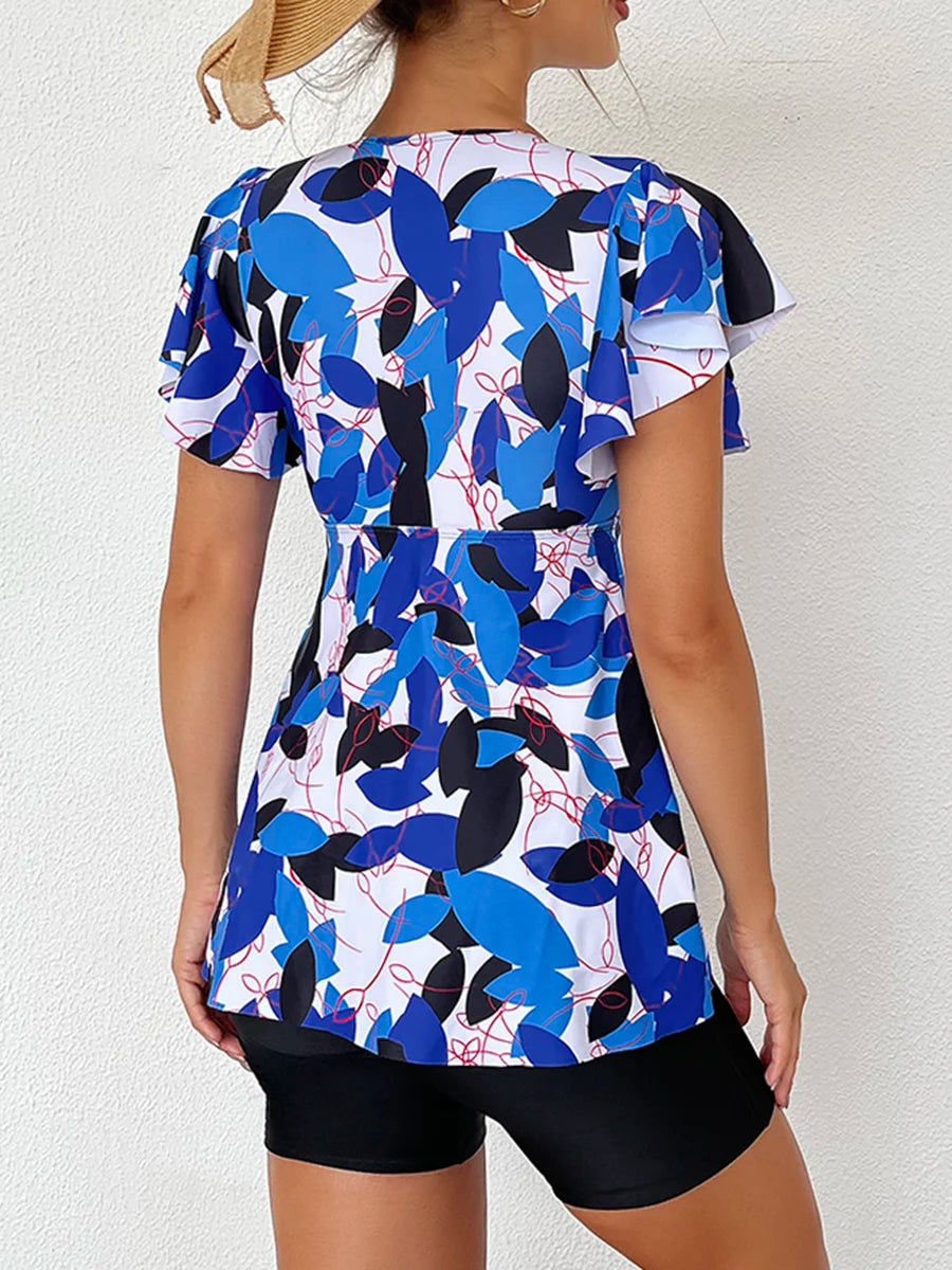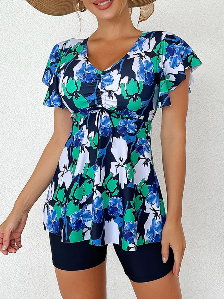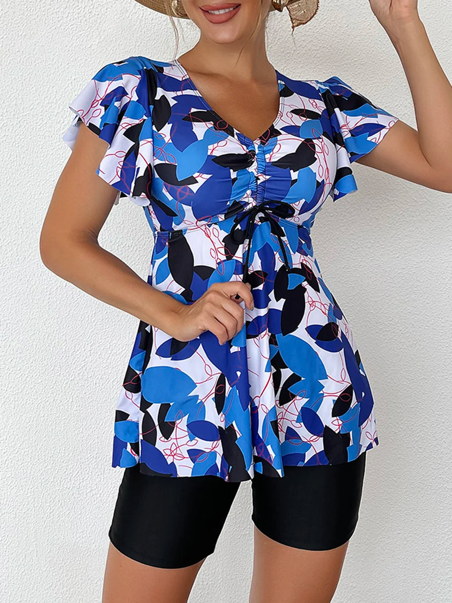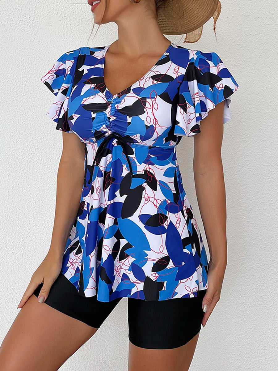 This printed tankini set combines style and function with a two-piece design featuring a flattering tie-front and adjustable drawstring for a customized fit. Made for swimming and beachwear, its comfortable fabric ensures freedom of movement and quick drying, making it an ideal choice for summer activities. Practical yet fashionable, this swimwear supports confidence both in and out of the water.