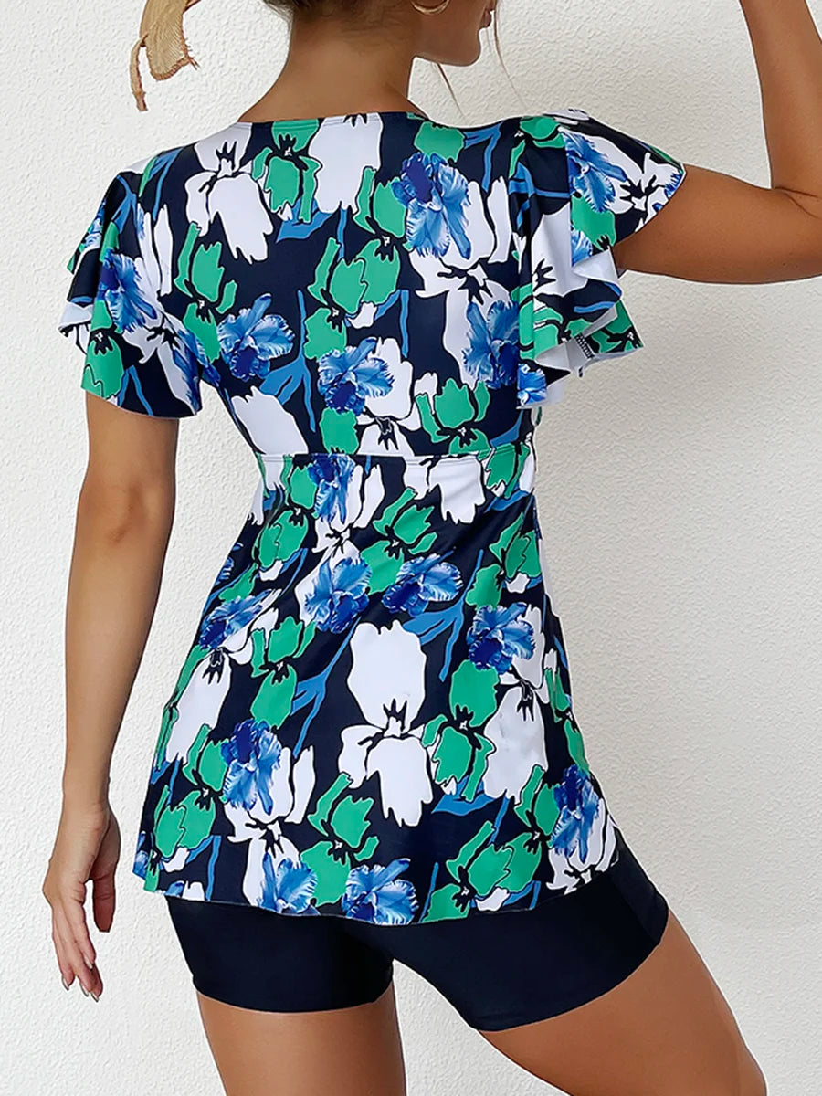 Printed Tankini Set Two Piece Swimsuit Women Tie Front Drawstring Swimwear Female Bathing Swimming Suit Beachwear Summer