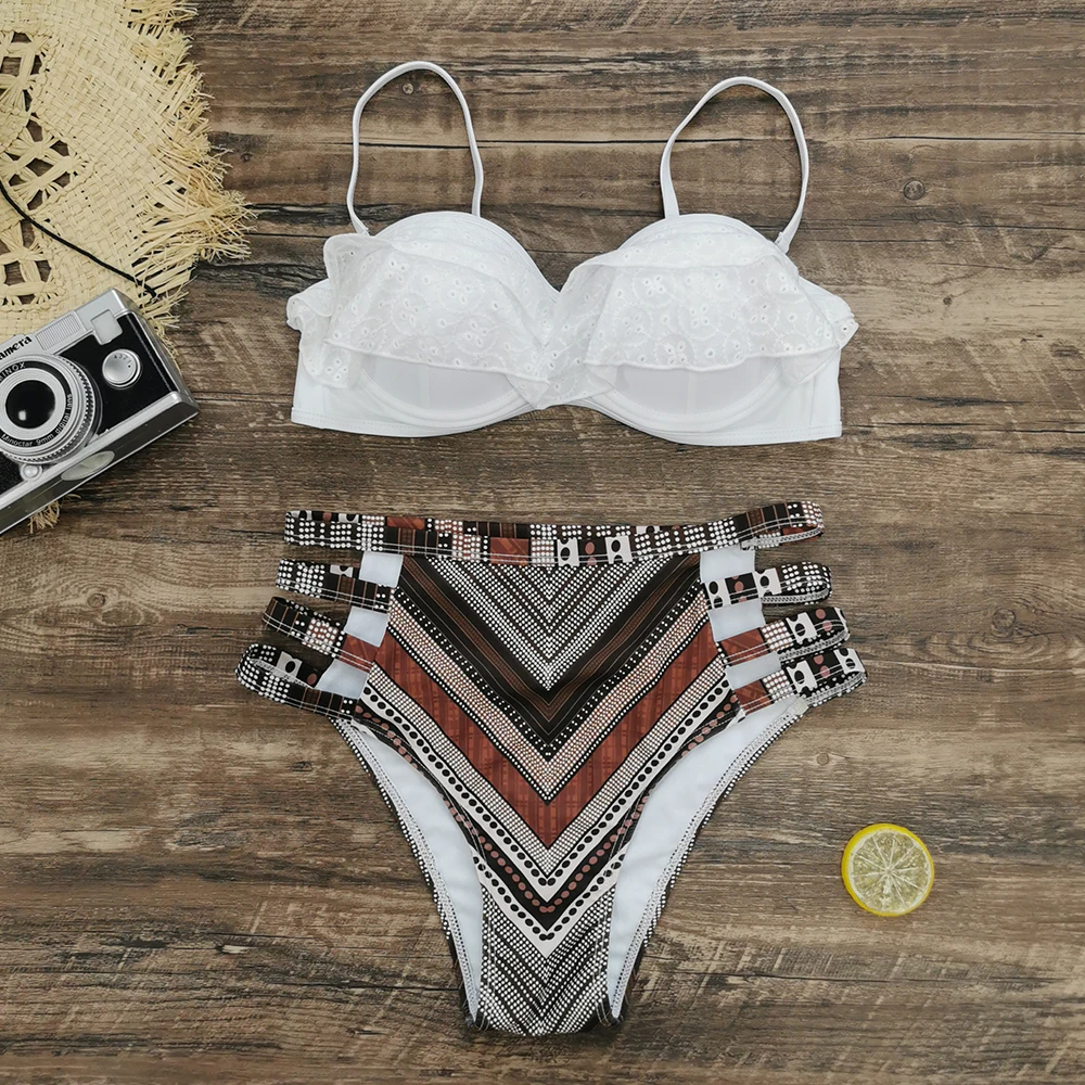 Leaf Print Bikini Female Swimsuit Women Swimwear Thong Push Up Bikinis Set High Waist Swimming Suits for Bathing Suit