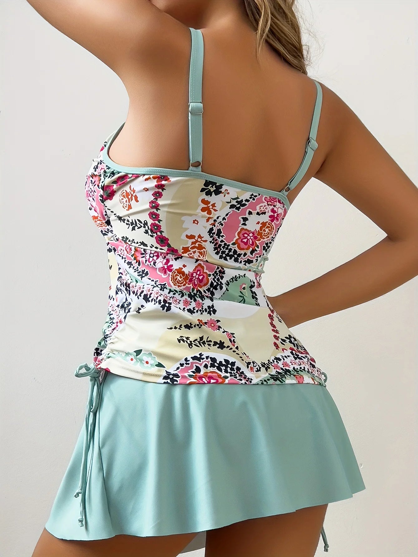 This two-piece strappy tankini set combines style and comfort for women seeking versatile swimwear. Featuring a vibrant printed design, it offers secure support with adjustable straps, ideal for swimming and beach activities. Crafted for a flattering fit, this swimsuit ensures both functionality and fashion for your aquatic adventures.