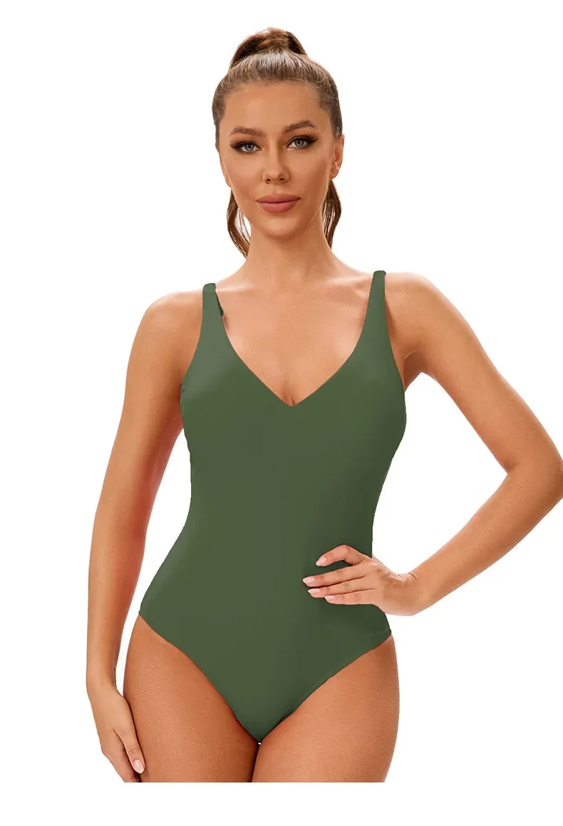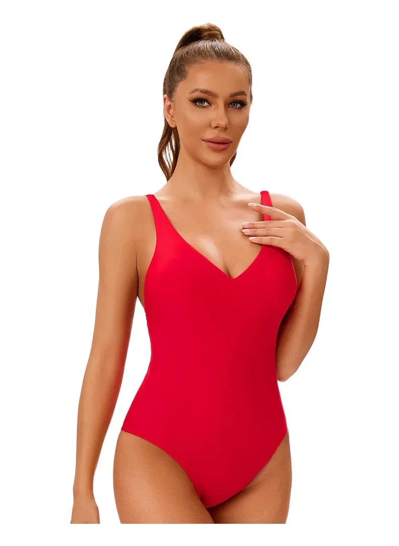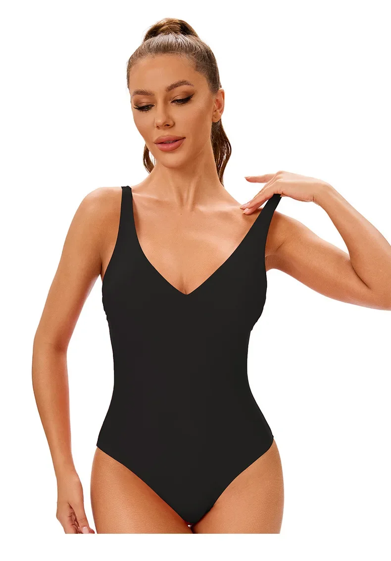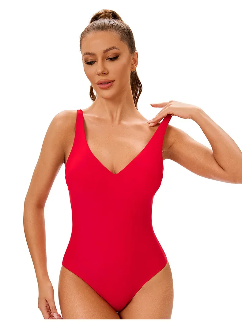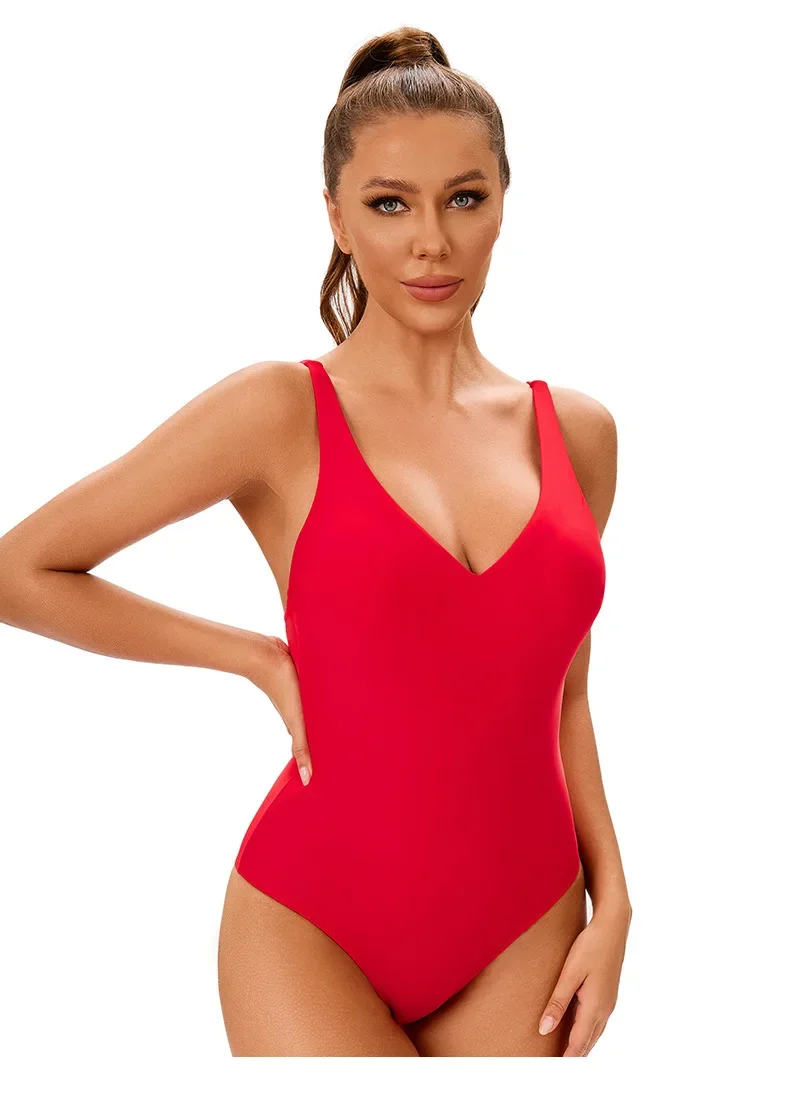 Swimsuit One Piece Swimsuit Swimwear Women Solid Color V-neck Bathing Suit Beachwear