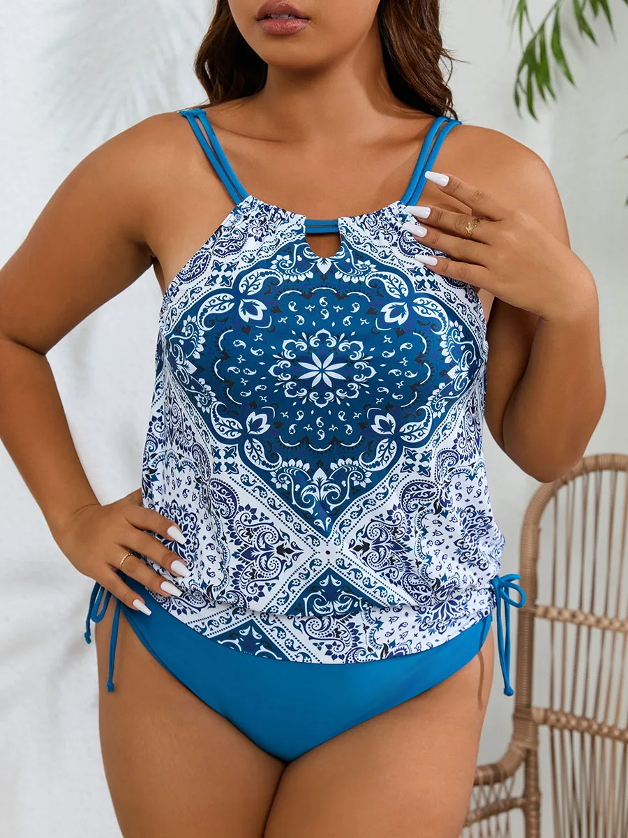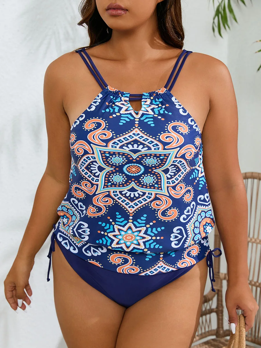 Designed for confident swimmers seeking comfort and coverage, this plus-size tankini combines flattering proportions with functional swimwear engineering. The halter neckline provides secure support while the tank silhouette offers extended torso coverage, making it ideal for lap swimming, beach outings, or casual water activities. The structured design accommodates larger frame sizes without compromising style or mobility. Perfect for those who prioritise both performance and aesthetic appeal in their aquatic wardrobe.