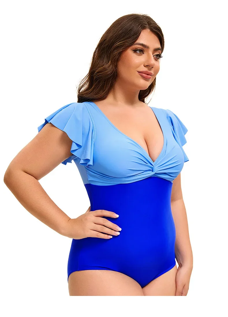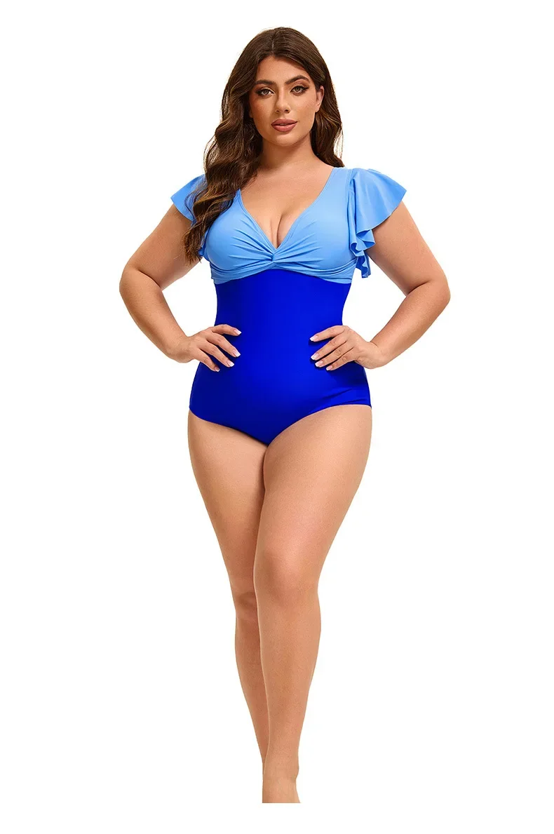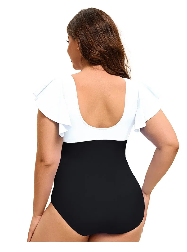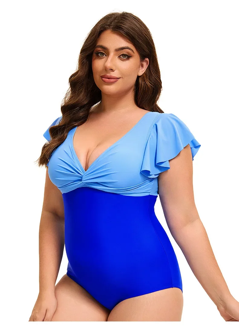 Swimsuit Plus Size Color Block One-Piece Swimsuit with Flounce Sleeves Swimwear XL-5XL