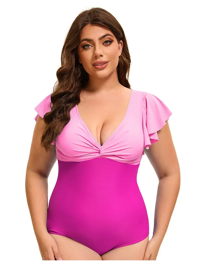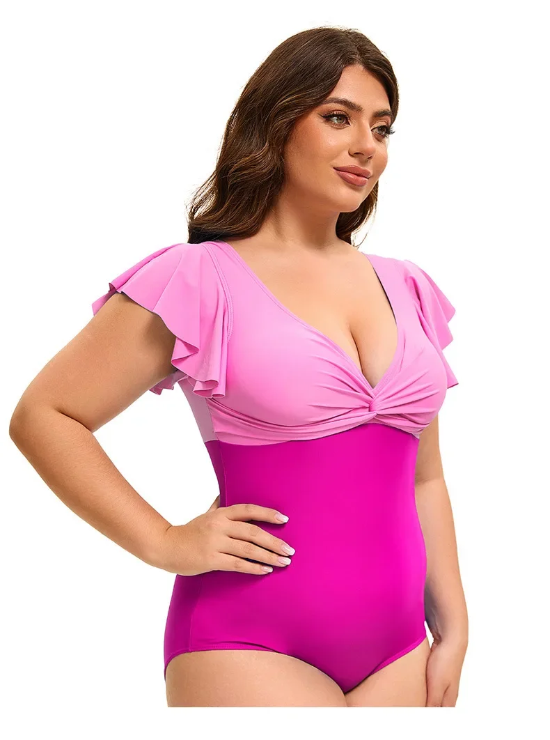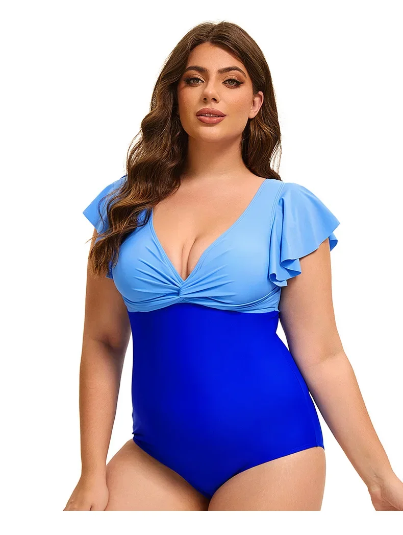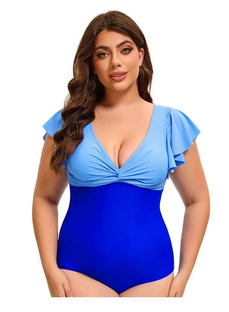 Swimsuit Plus Size Color Block One-Piece Swimsuit with Flounce Sleeves Swimwear XL-5XL