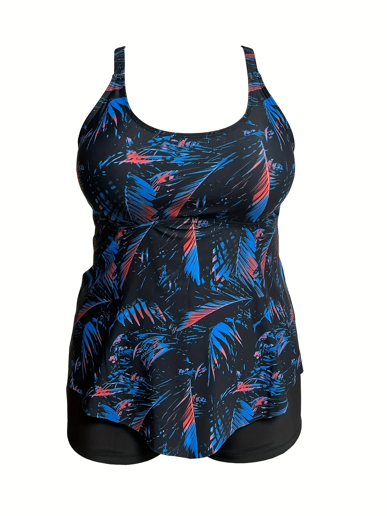 This two-piece tankini swimsuit combines style with practical coverage, ideal for swimmers seeking comfort and confidence. The printed design adds visual interest while the tankini silhouette provides extended torso coverage. Crafted for plus-size fit, it delivers a flattering shape that accommodates diverse body types. The separate top and bottom pieces allow for individual sizing adjustments, ensuring a personalised fit. Perfect for beach outings, pool sessions, or casual water activities, this versatile bathers option merges contemporary swimwear design with functional support for everyday wear.
