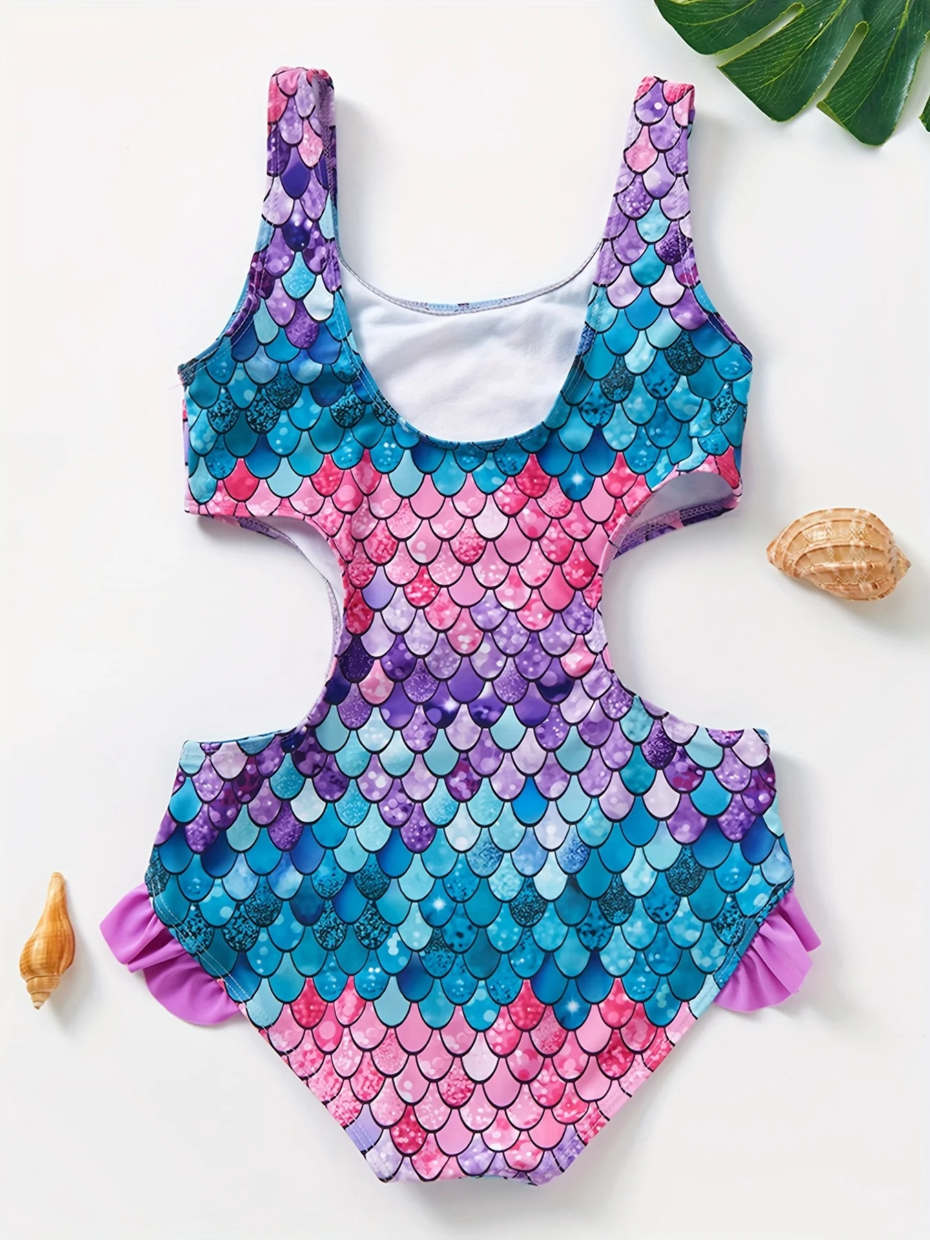 3-10 Years Toddler Girls Swimsuits Kids Girl Multi-color Off-the-shoulder One-piece Swimsuit