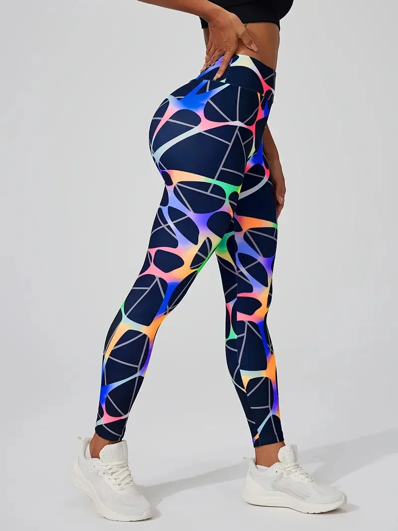 3D Print Creative Stripe Pattern Yoga Pants For Women Four Season Casual Sports Elastic Pant Lady Gym Fitness Lift Hip Leggings
