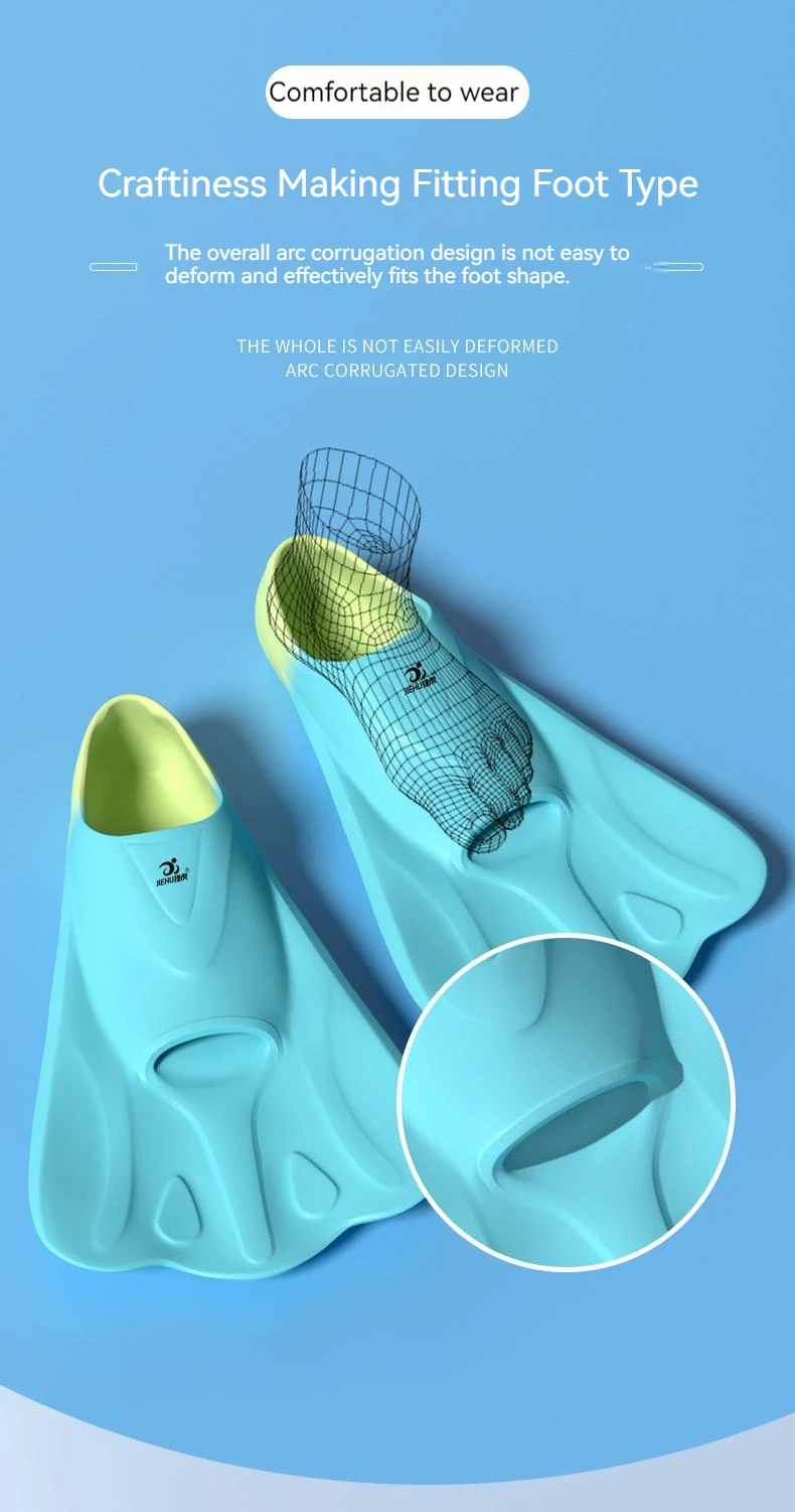 Adult Teens Kids Childrens Professional Snorkeling Diving Swimming Fins Frog Silicone Short Flippers Diving Scuba Equipment