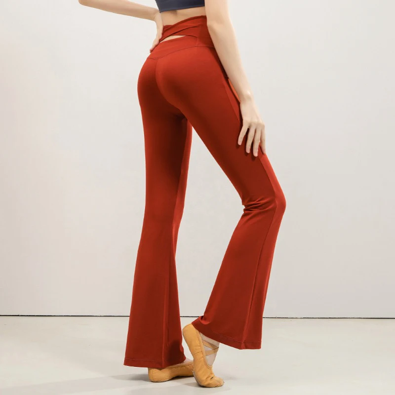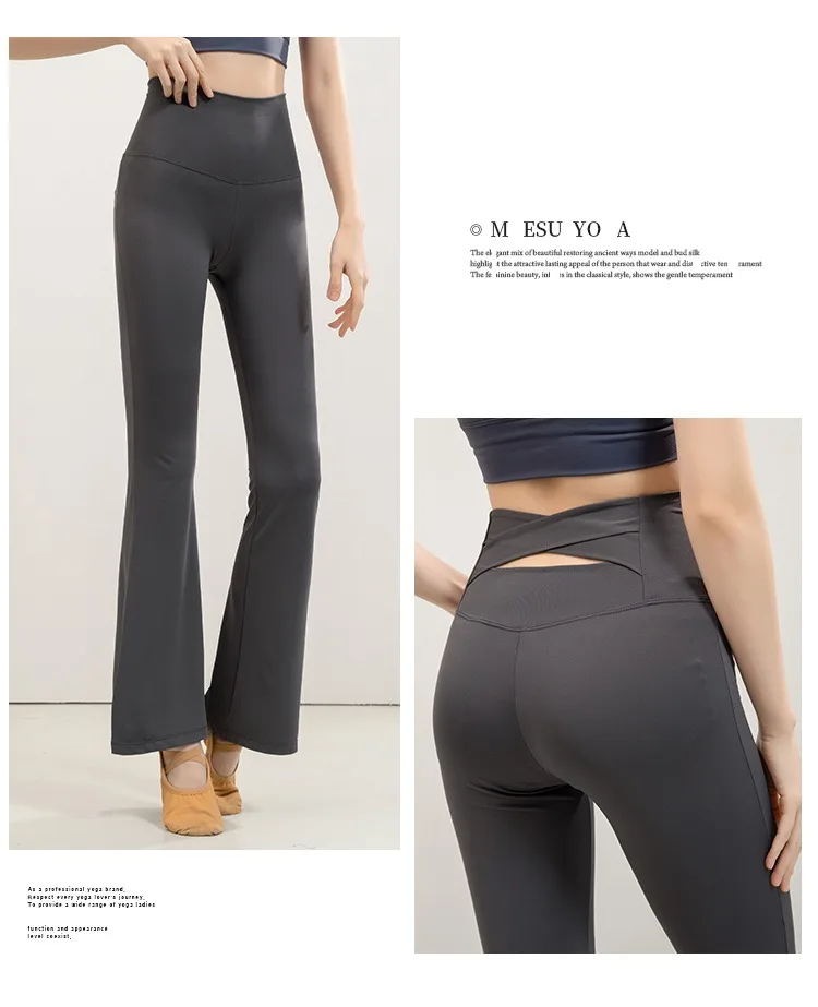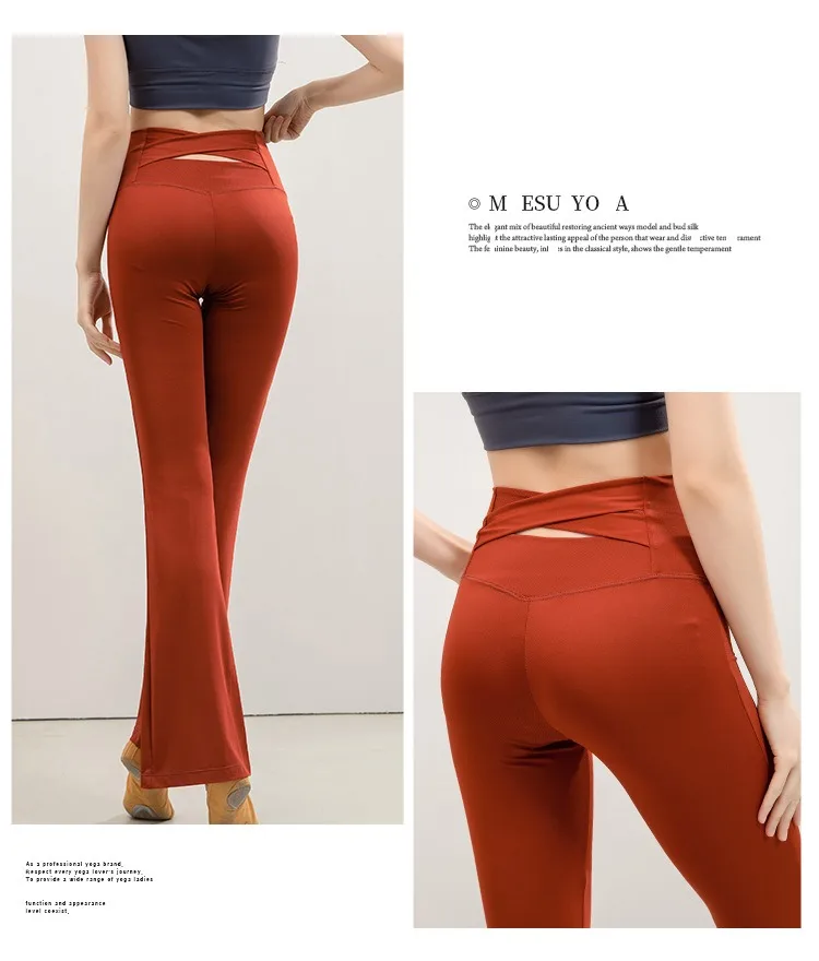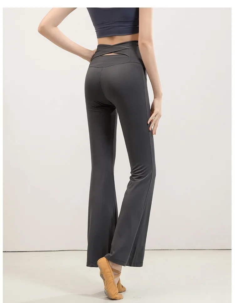 Flared Cross Waistband Yoga Pants Women's High Waist Slimming Pant Seamless Breathable Dancing Fitness Pilates Leggings