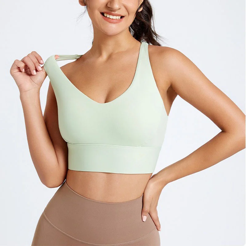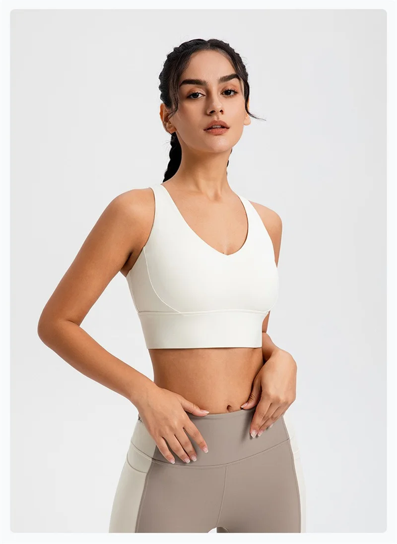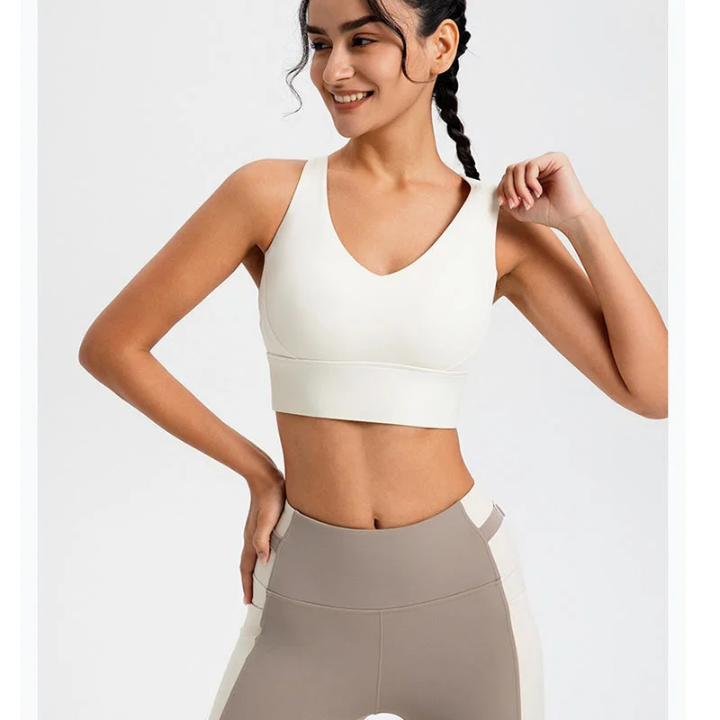 Experience superior support and comfort with this V-neck high-impact yoga bra, engineered for active women. The criss-cross back design distributes weight evenly while the padded cups provide gentle shaping and modesty. Adjustable straps ensure a customized fit for your unique frame, while the medium-to-high support level handles dynamic movements from yoga to cardio. Breathable fabric keeps you cool during intense sessions, and the flattering V-neckline works seamlessly under any top. Built for performance and style, this sports bra delivers the stability you need to focus on your practice.