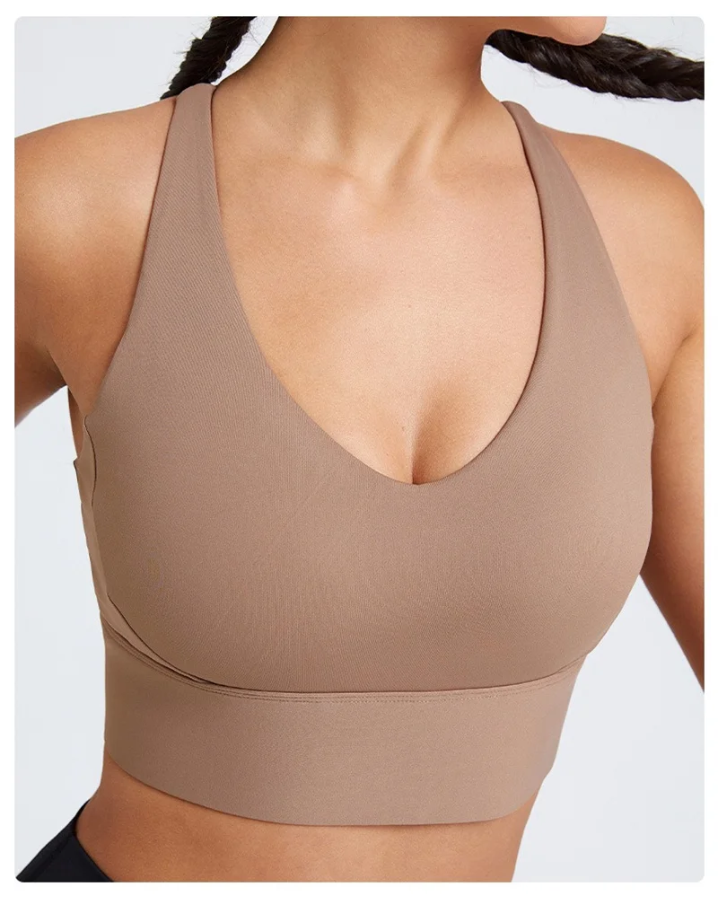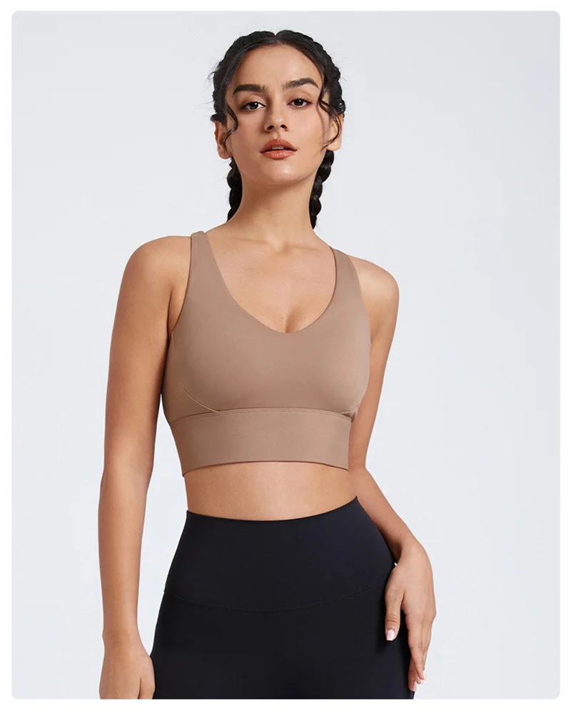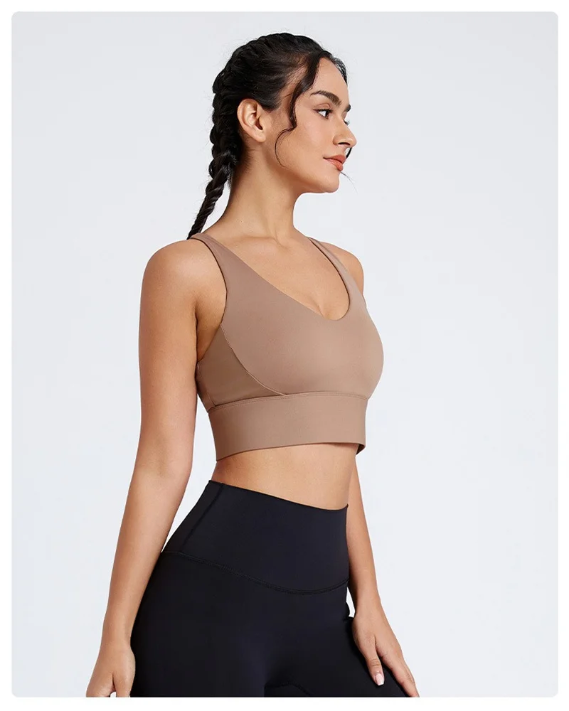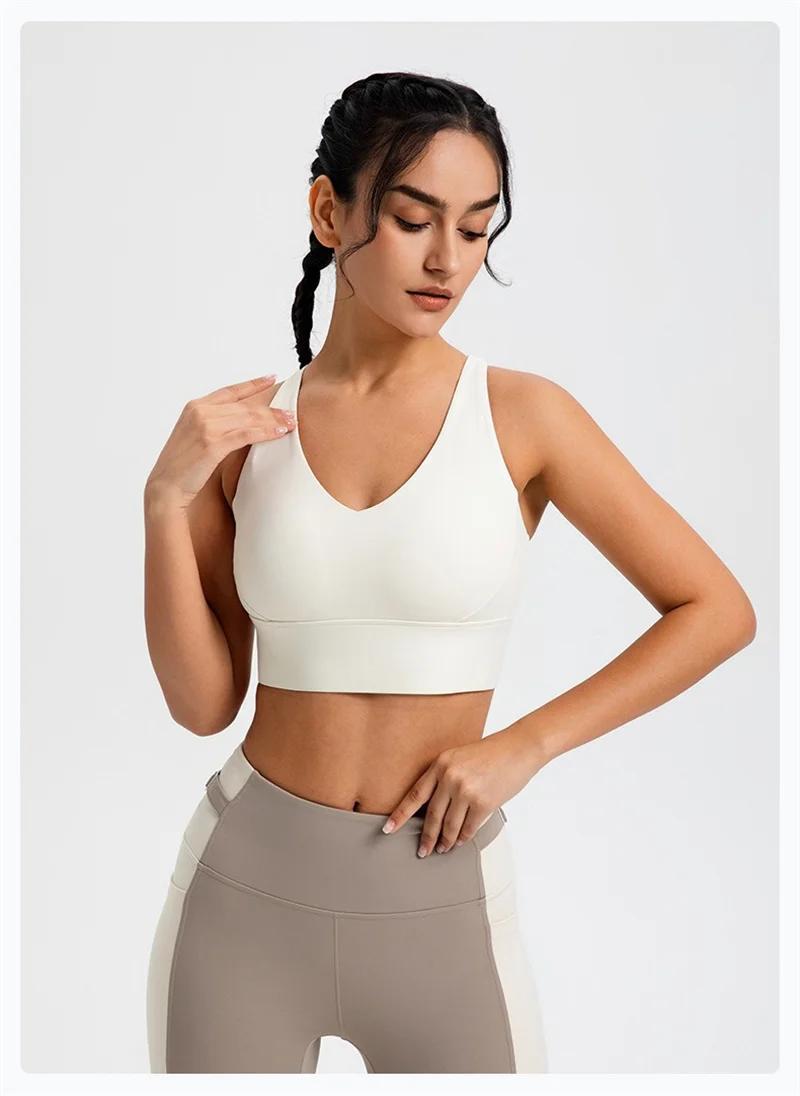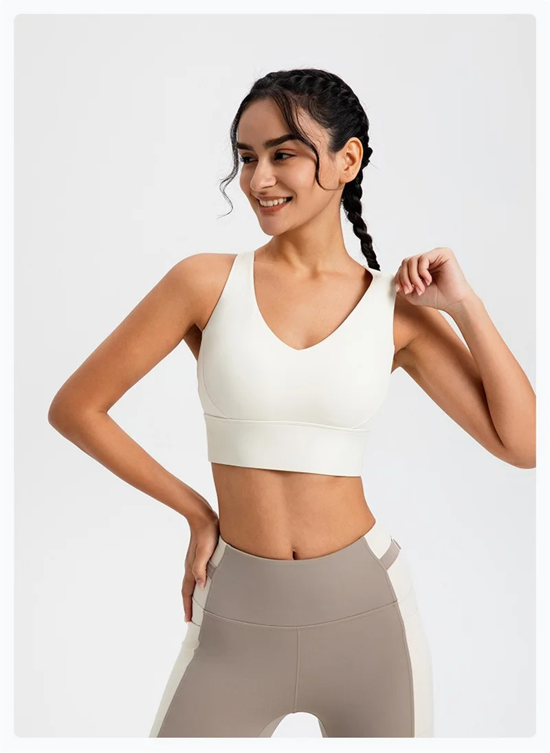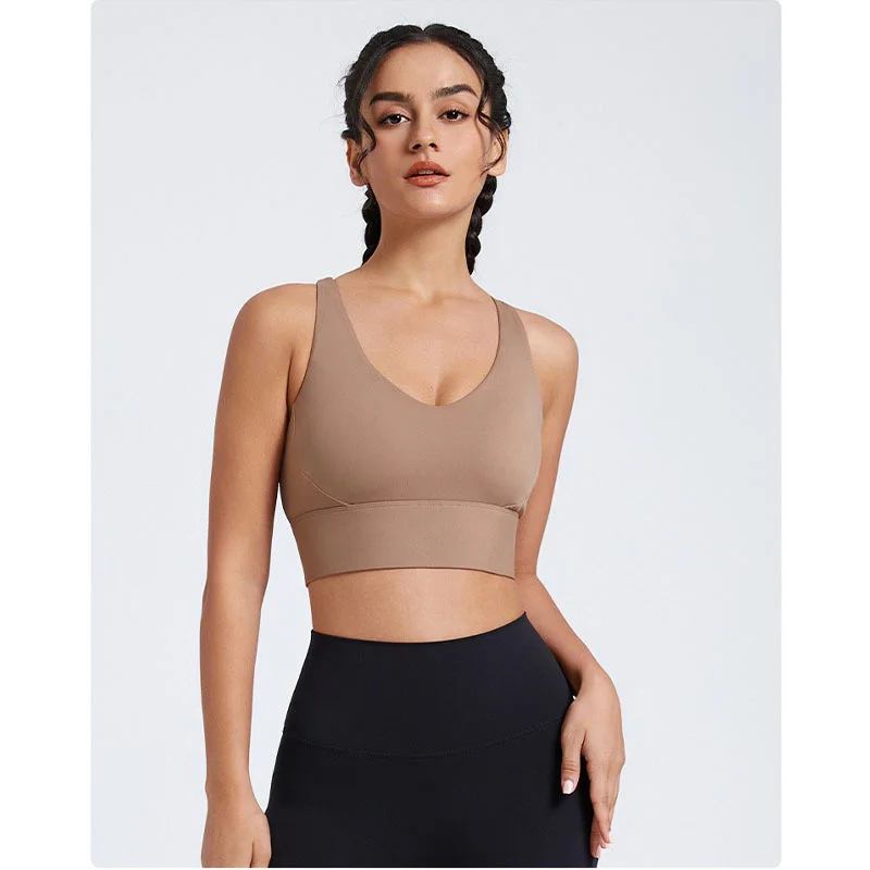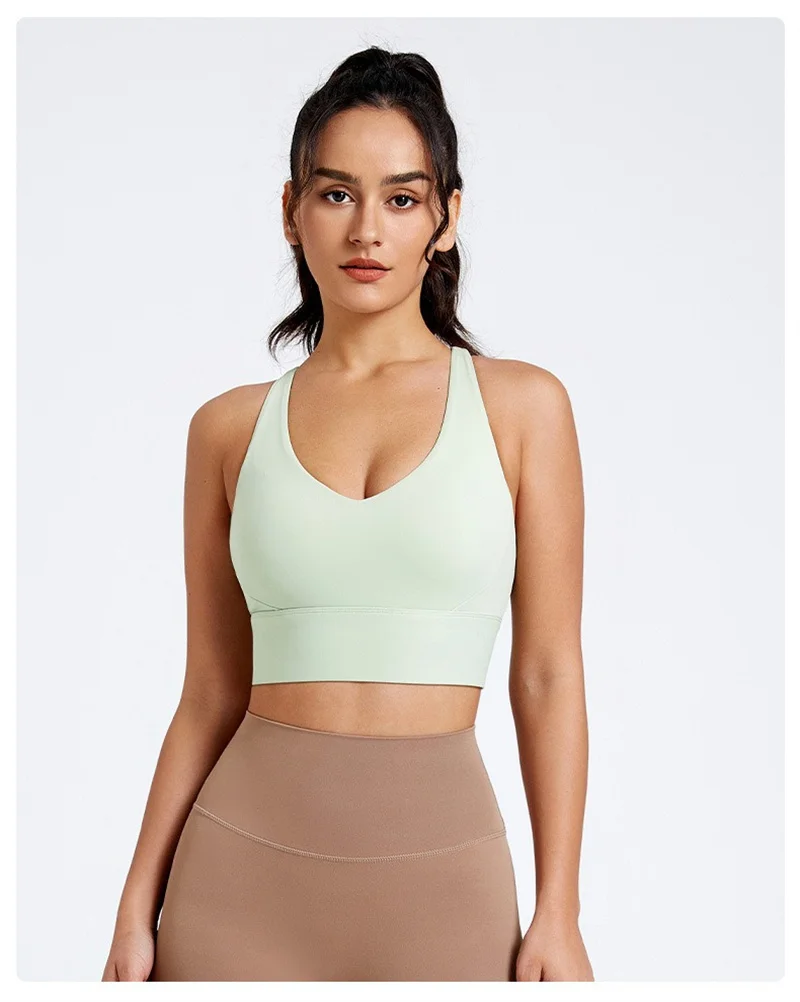 V Neck High Impact Yoga Bra Sports Bra Women High Support Criss-Cross Back Padded Strappy Sports Bras Medium Support