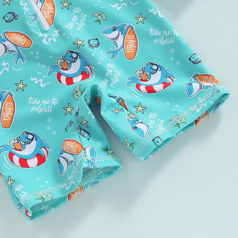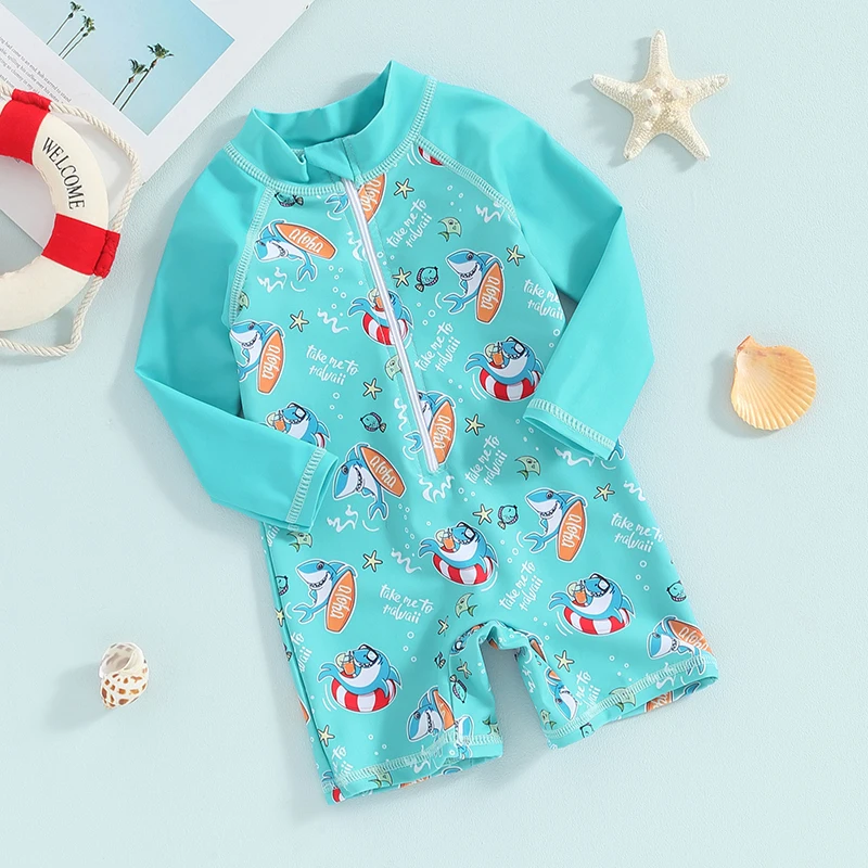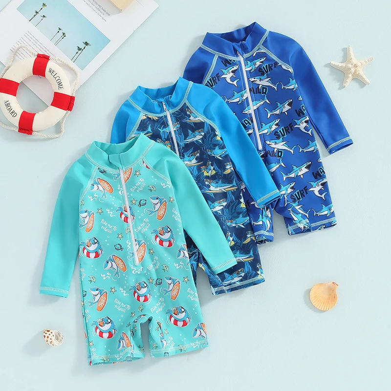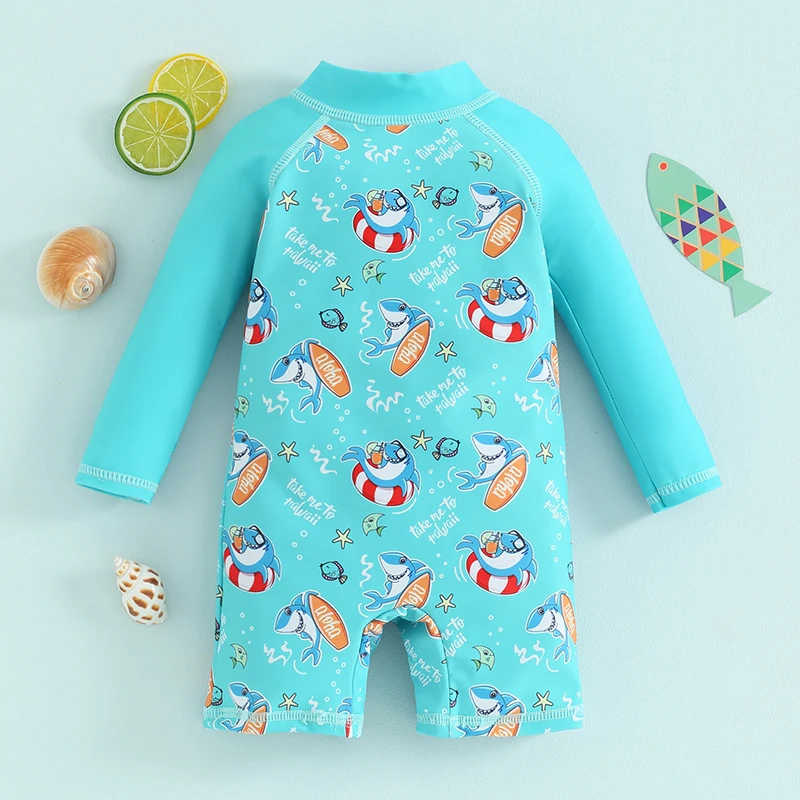 Baby Boys Rash Guard Swimsuit Rompers Zipper Long Sleeve Shark Print Toddler Bathing Suit Swimwear