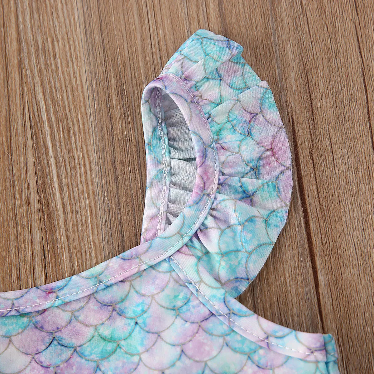 Baby Girls Mermaid Swimwear Fish Scale Swimsuits Ruffled Sleeveless Bathing Suit with Tutu Skirt