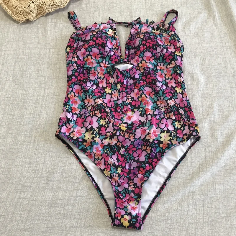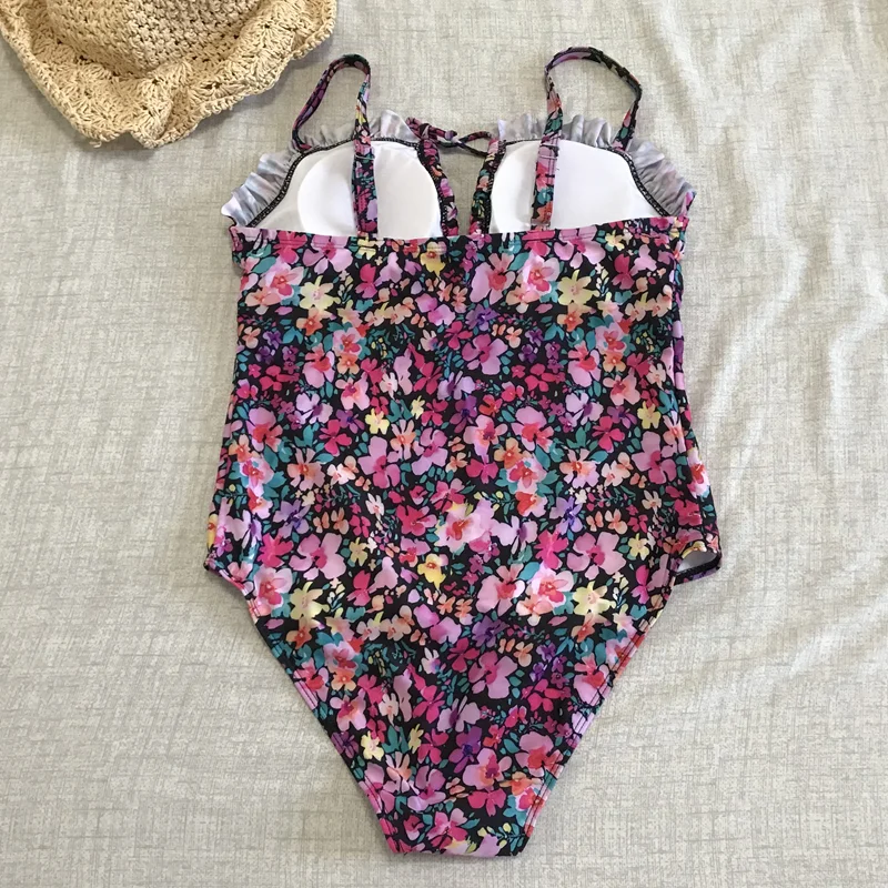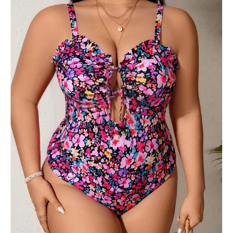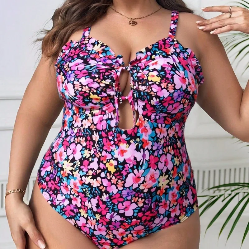 Engineered for confident swimming and beach days, this plus-size one-piece swimsuit combines functional design with flattering silhouette. The integrated tummy control panel smooths and supports your midsection, while strategic push-up construction enhances your natural shape. The vibrant printed pattern adds personality to your swimwear collection. Crafted from durable, chlorine-resistant fabric, it maintains its colour and elasticity through regular pool use. Perfect for lap swimming, water aerobics, or leisurely beach outings, this versatile piece delivers both performance and style in extended sizing.