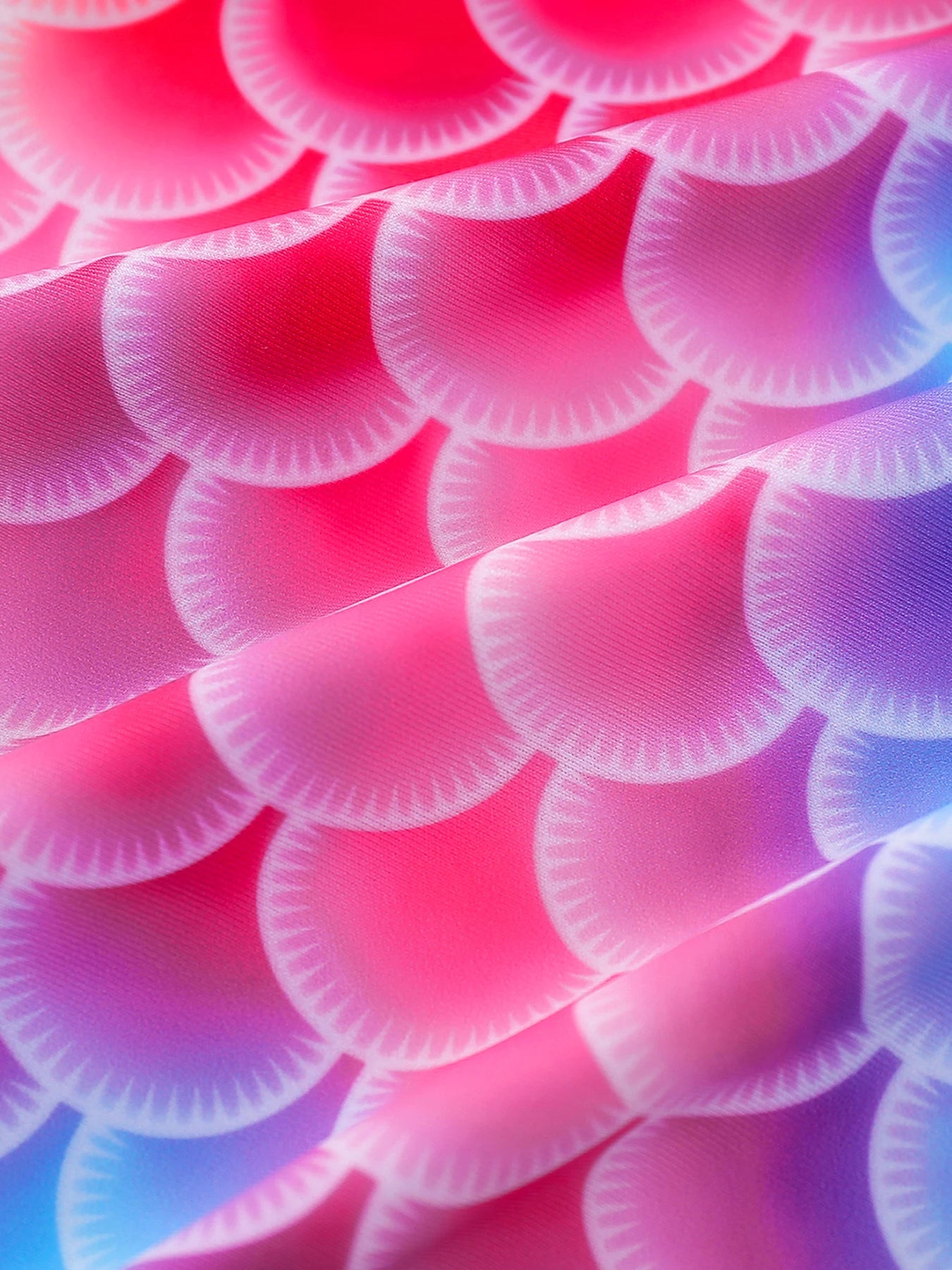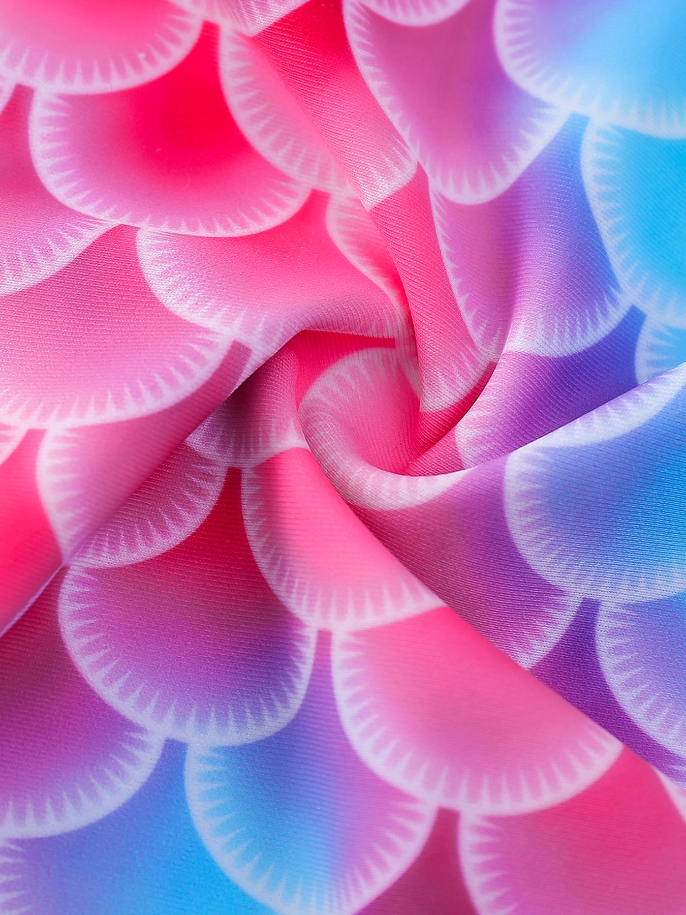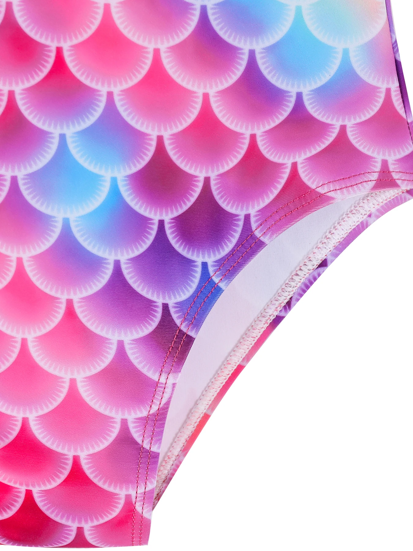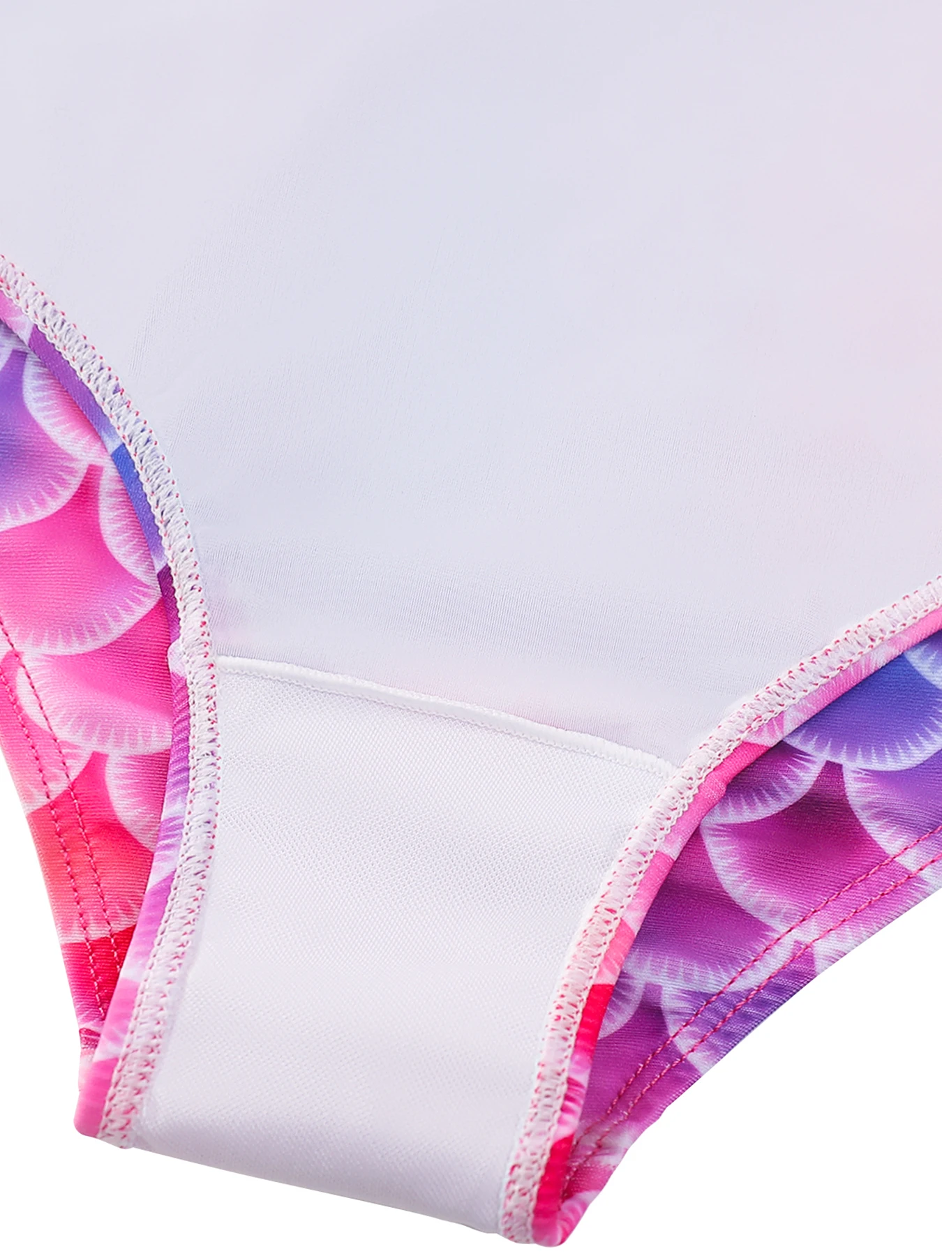 This stylish one-piece swimsuit combines fashion with function for young swimmers. The asymmetrical one-shoulder design with delicate ruffle detailing creates an eye-catching look, while the 3D scale pattern adds texture and visual interest. Crafted for comfort and durability, it's perfect for pool days, beach outings, and summer adventures. The secure fit ensures confidence in the water, making it an ideal choice for active kids who want to look great while they play.