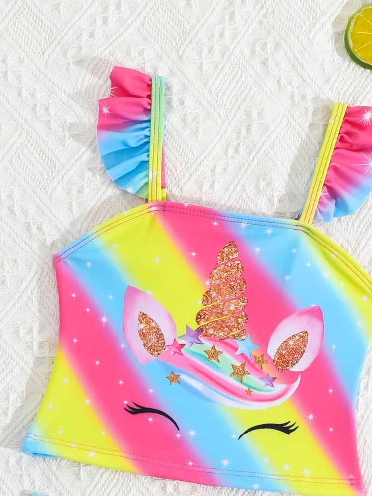 Bikini Girls Kids Swimsuit Rainbow Strips Ruffle Sling Children Swimwear Summing Bikinis Short Skirt Beach Bathing Suit