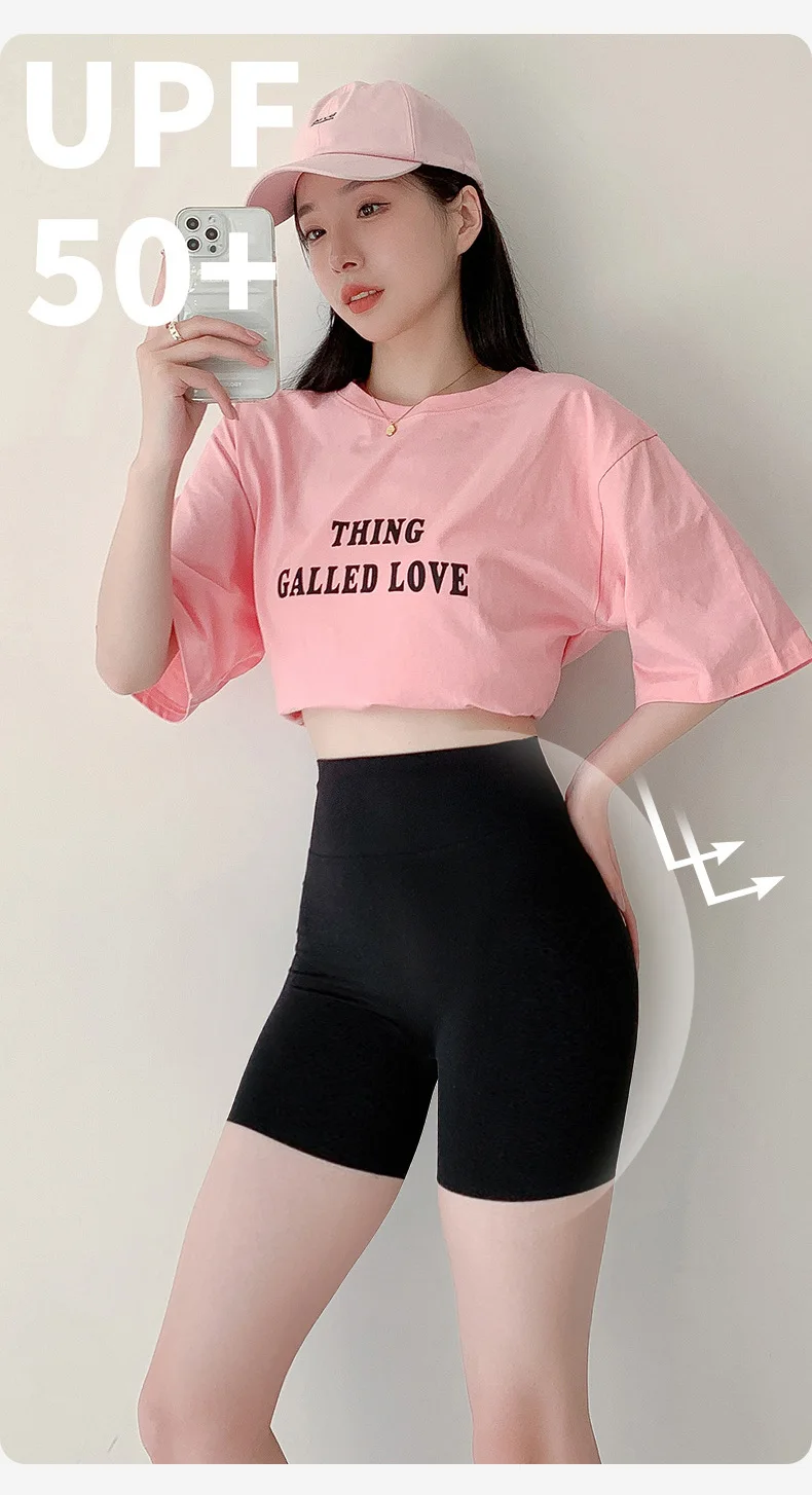 These high-waist mini shorts combine performance and style with premium sharkskin fabric that delivers superior comfort during cycling, gym sessions, and casual wear. The seamless construction eliminates chafing while the snug fit provides essential support for active pursuits. Bold letter printing adds contemporary flair to your athletic wardrobe. Engineered for those who demand both functionality and fashion, these shorts feature a secure fit that stays in place through intense movement. Perfect for swimmers, cyclists, and fitness enthusiasts seeking reliable, versatile shorts that transition