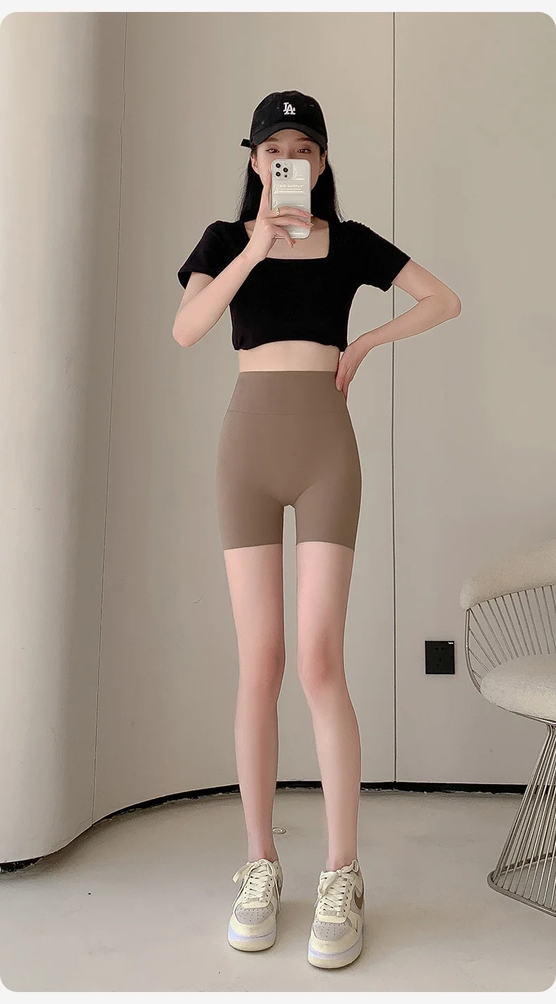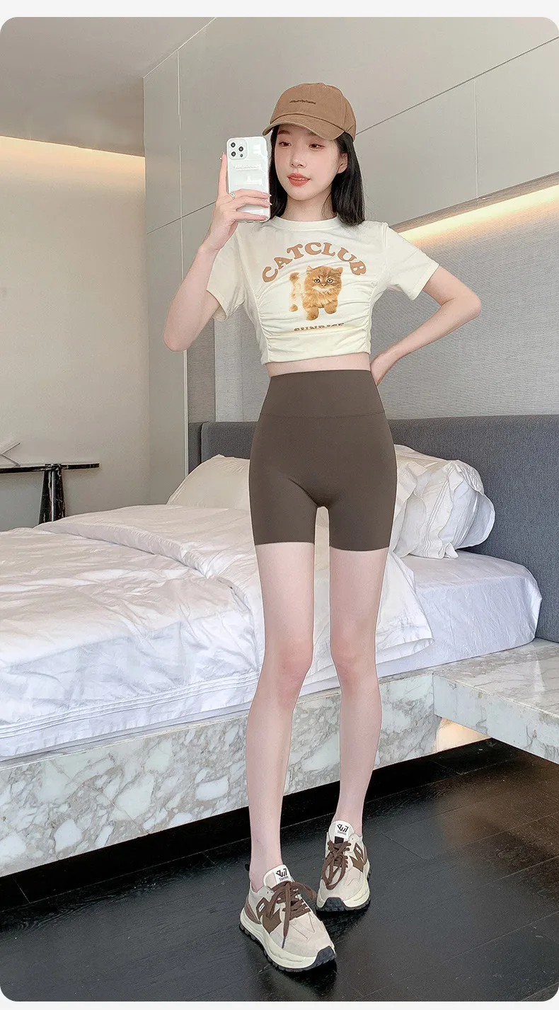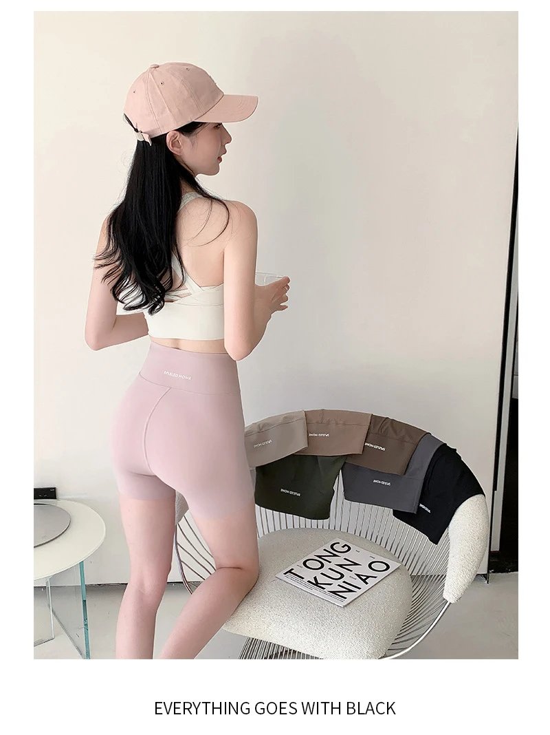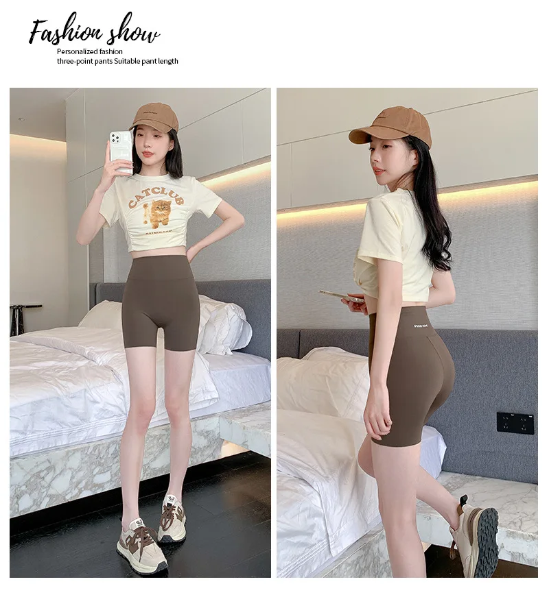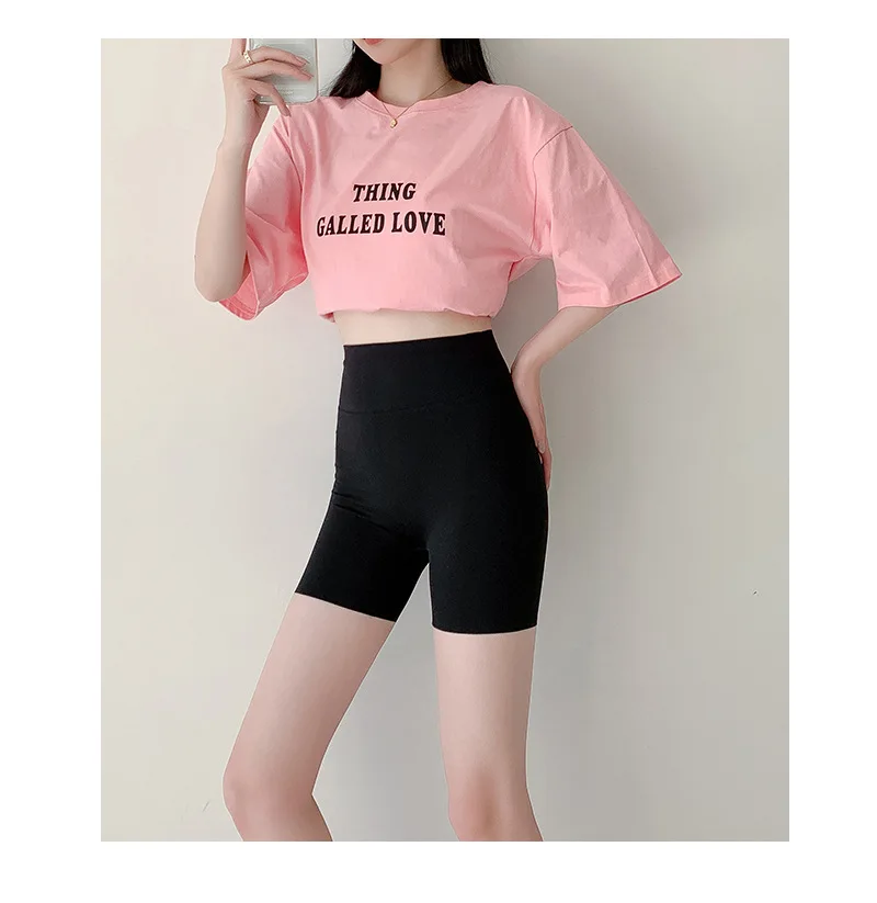 Letter Printed Sharkskin Mini Shorts Women High Waist Tight Casual Seamless Sport Cycling Safety Short